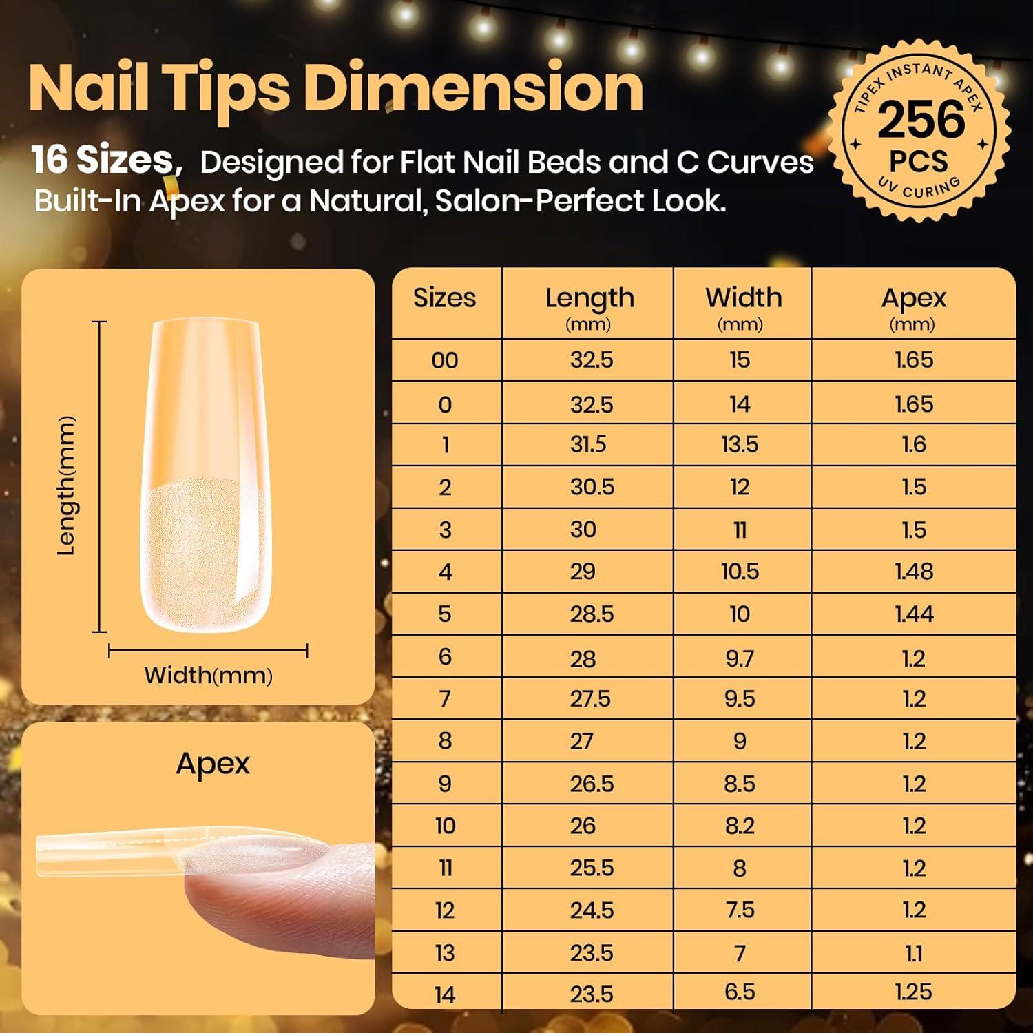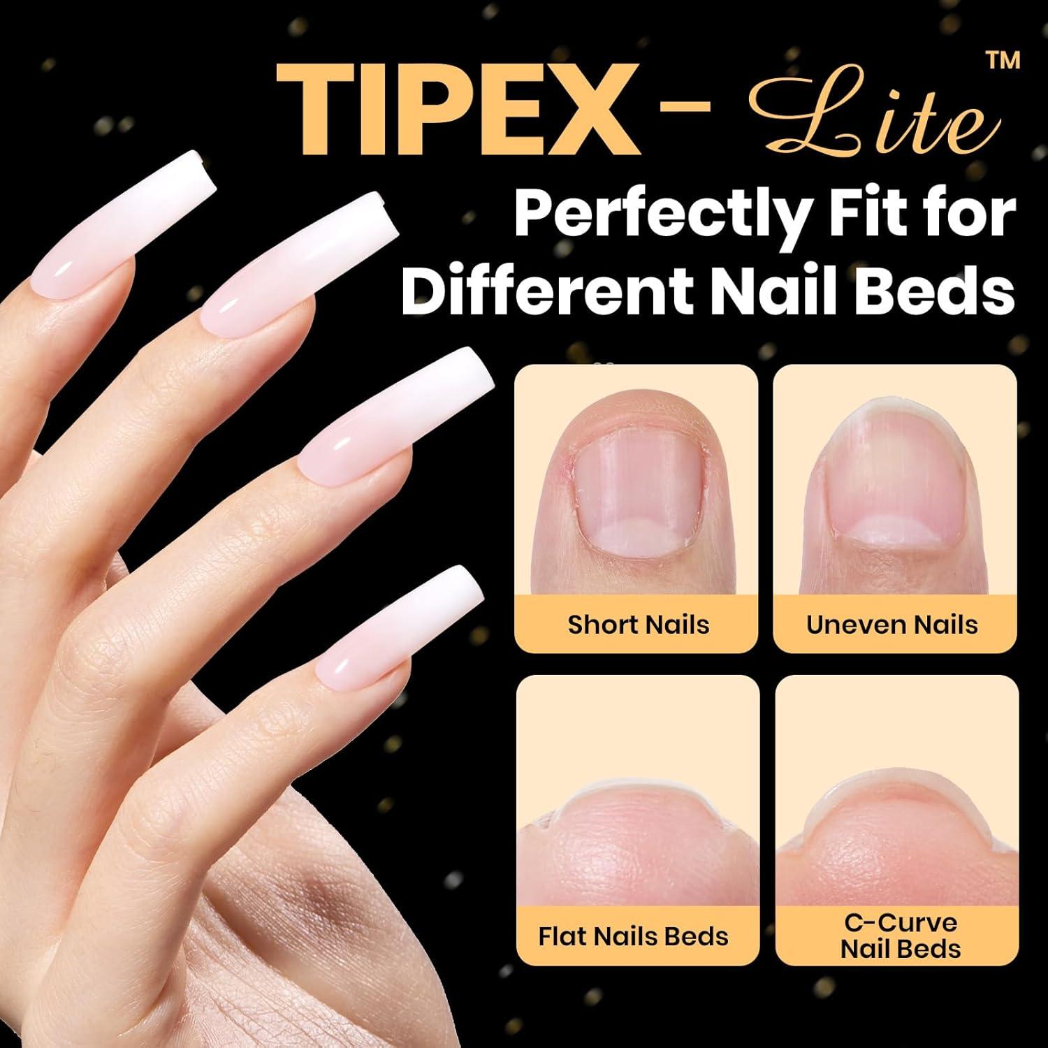 Beetles 2Pcs 20g Nail Glue Gel, No Wipe, Hands-Free Tipex Solid Nail Glue Gel, Super Strong for Acrylic Nails Extension Fake Nails, 3D Nail Art, Great for Home & Salon Use, U V Light Required(0B-Tipex Lite-Square Long 256pcs)