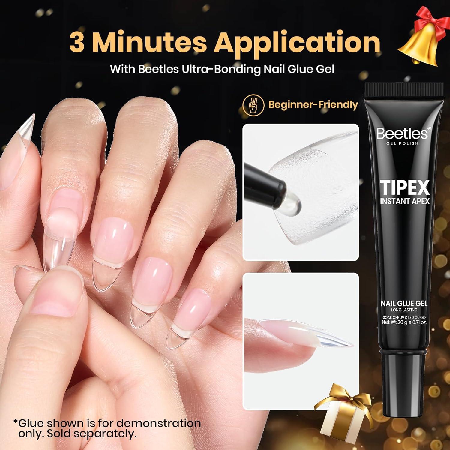 Beetles 2Pcs 20g Nail Glue Gel, No Wipe, Hands-Free Tipex Solid Nail Glue Gel, Super Strong for Acrylic Nails Extension Fake Nails, 3D Nail Art, Great for Home & Salon Use, U V Light Required(0A-Tipex Lite-Stiletto Medium 256pcs)