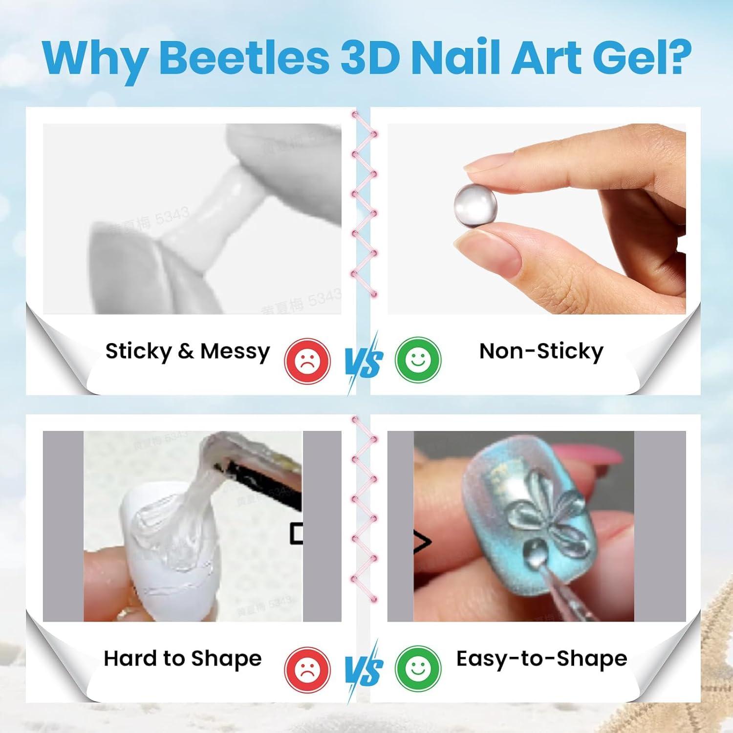 Long-Lasting Wear: Crafted with premium materials, Beetles 3D gel sculptures maintain their shape and clarity, resisting deformation. With proper nail prep and application of base and top coats, enjoy stunning, dimensional nail art that stays flawless for long lasting