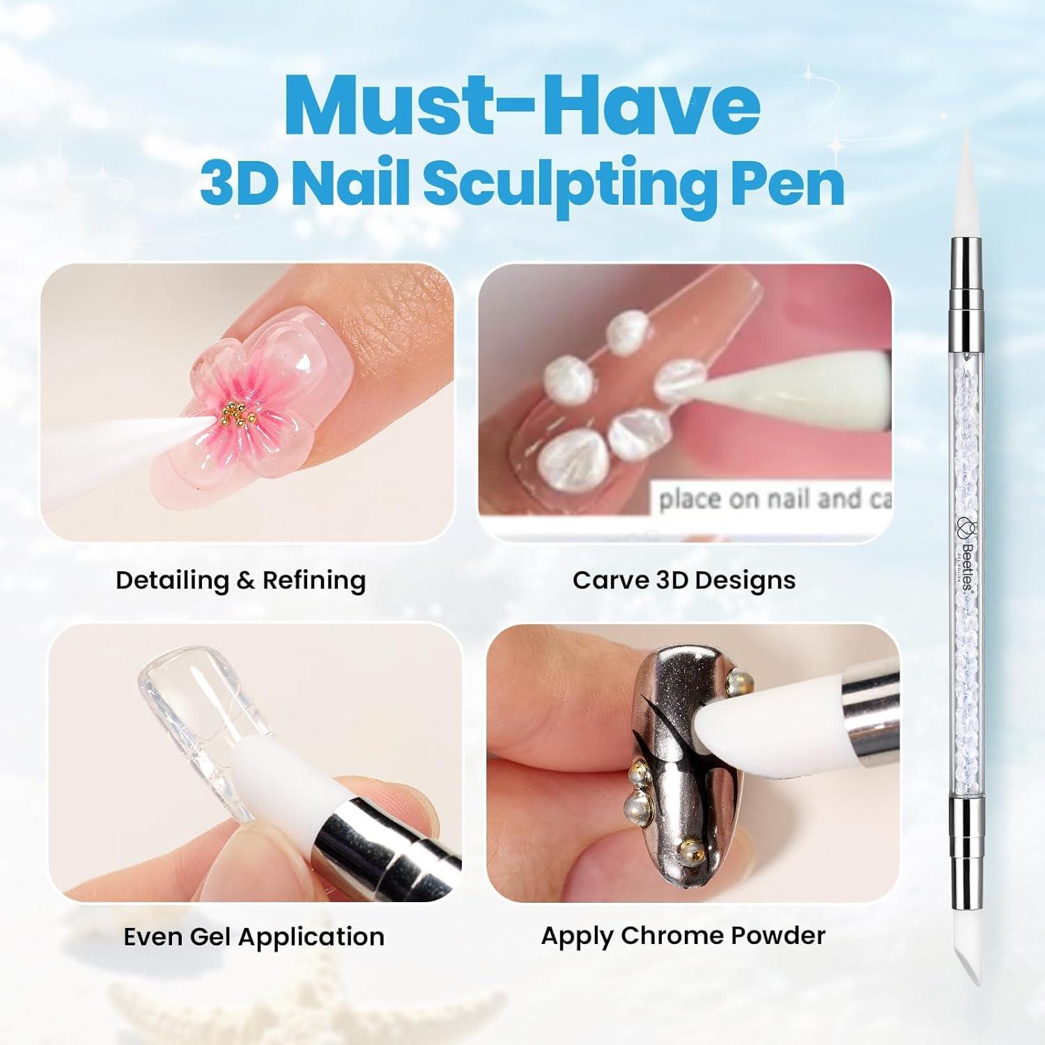 imageBeetles 3D Gel Nail Art with 3D Mold2 Pcs Sandy Glow Clear and White Solid Builder Gels for Nails NonSticky Sculpting with DualEnded Sculpture Pen Beginner Friendly DIY at HomeUV LED Lamp NeededB4Clear  White Solid Builder Gel