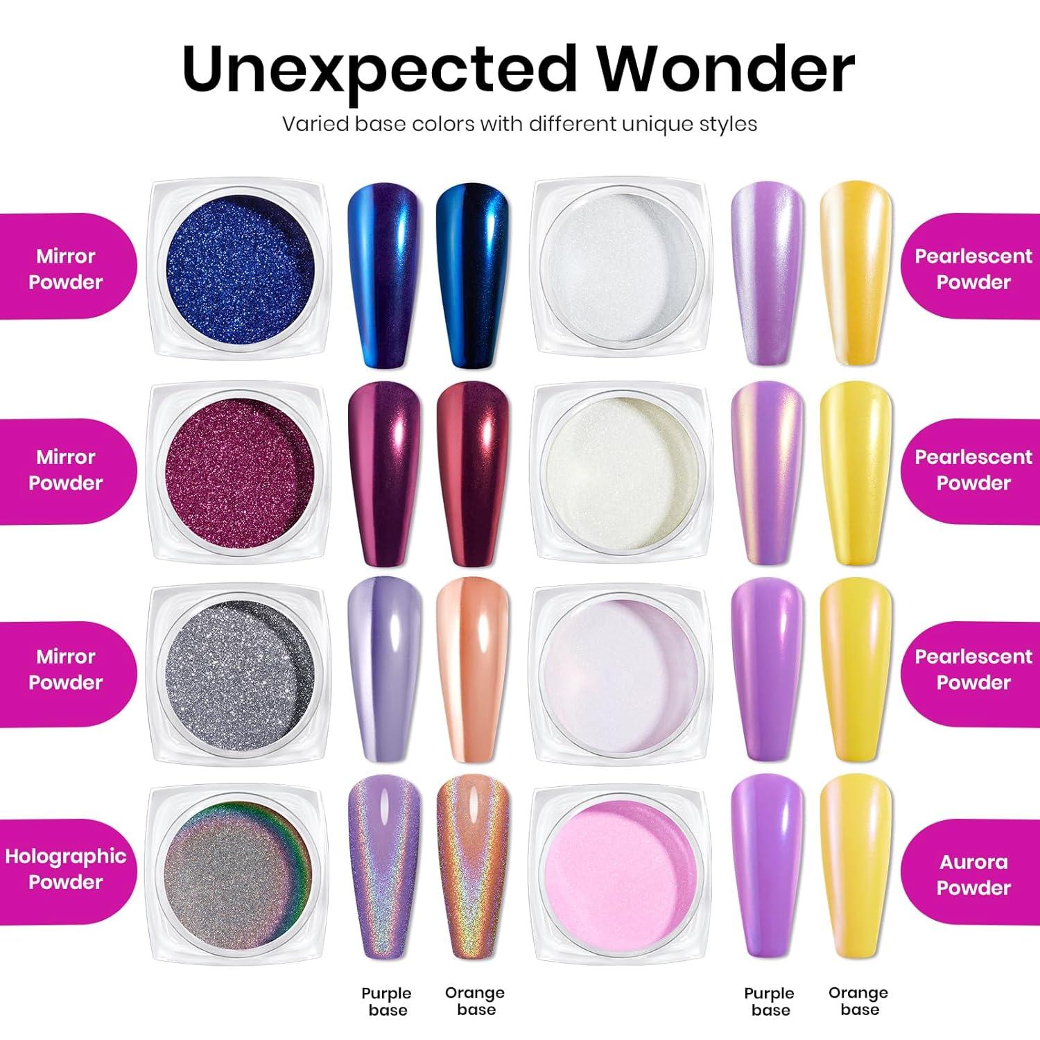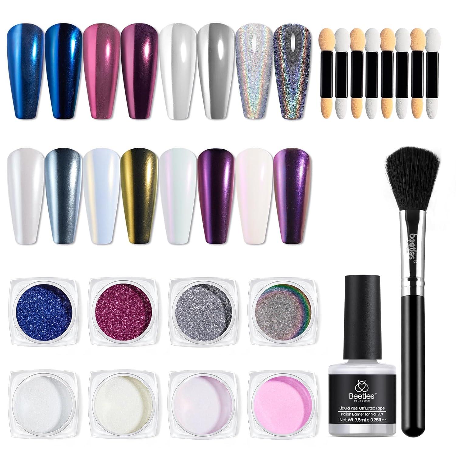imageBeetles 3D Nail Art Brushes Dualended Silicone Manicure Tool Gold Chrome Nail Powder 15mm Liner Brush Dotting Tool with Flowers Bowknot Mold Pearls for 3D Manicure Design Carving Drawing Effect08 Colors Metallic Chrome Powder