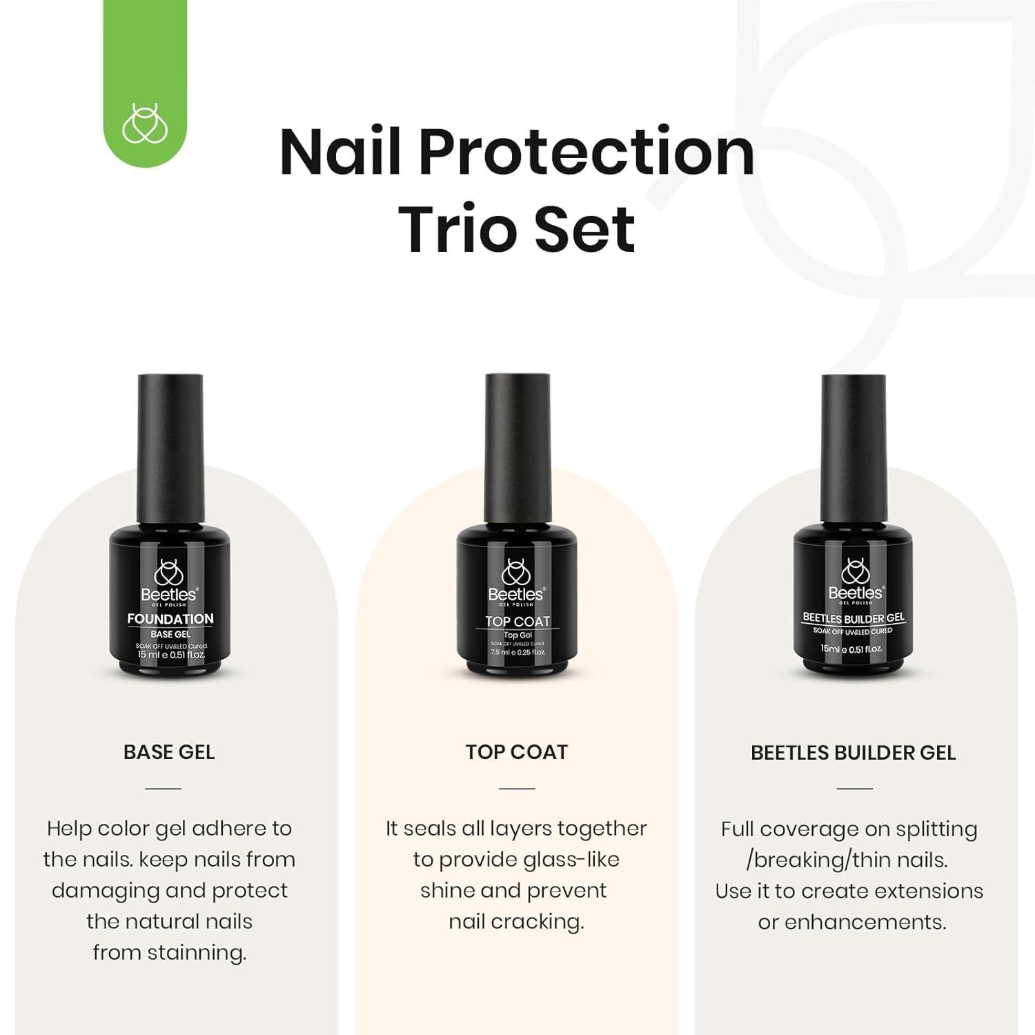 Nail Protection Trio Set: Beetles Christmas Top and Base Coat Builder Nail Gel Set (3*15ml /3*0.51fl.oz): Long lasting for 28+ days with perfect shine. A flexible top coat avoids nicks, chips, or smudges. Compatible with All Brands Soak-off Gel Nail Polish. Suitable for natural nails, gel nails, artificial nails, acrylic nails, nail tips, etc.(Tip: The base gel can not be used as glue. )