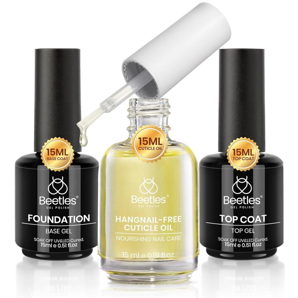 imageBeetles 3Pcs 15ml Builder Nail Gel with No Wipe Top Coat Gel Nail Polish and Base Coat Christmas Set for Nails Shine Finish and Long Lasting Nail Protection UVLED Lamp Needed Gift for WomenBase Top Coat Cuticle Oil Kit