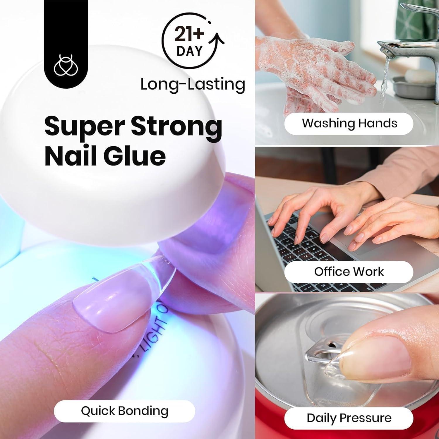 Perfect For Your Nail Extension: Our Nail Prep & Glue Set is perfect for Nail Extension. Special design for false nail tips and press-on nails.For proper curing, use clear nail tips to allow full UV/LED lightpenetration. Dark, opaque, or pre-designed press-ons may block light. For best results, we strongly recommend applying clear nail tips first, then continuing to design.