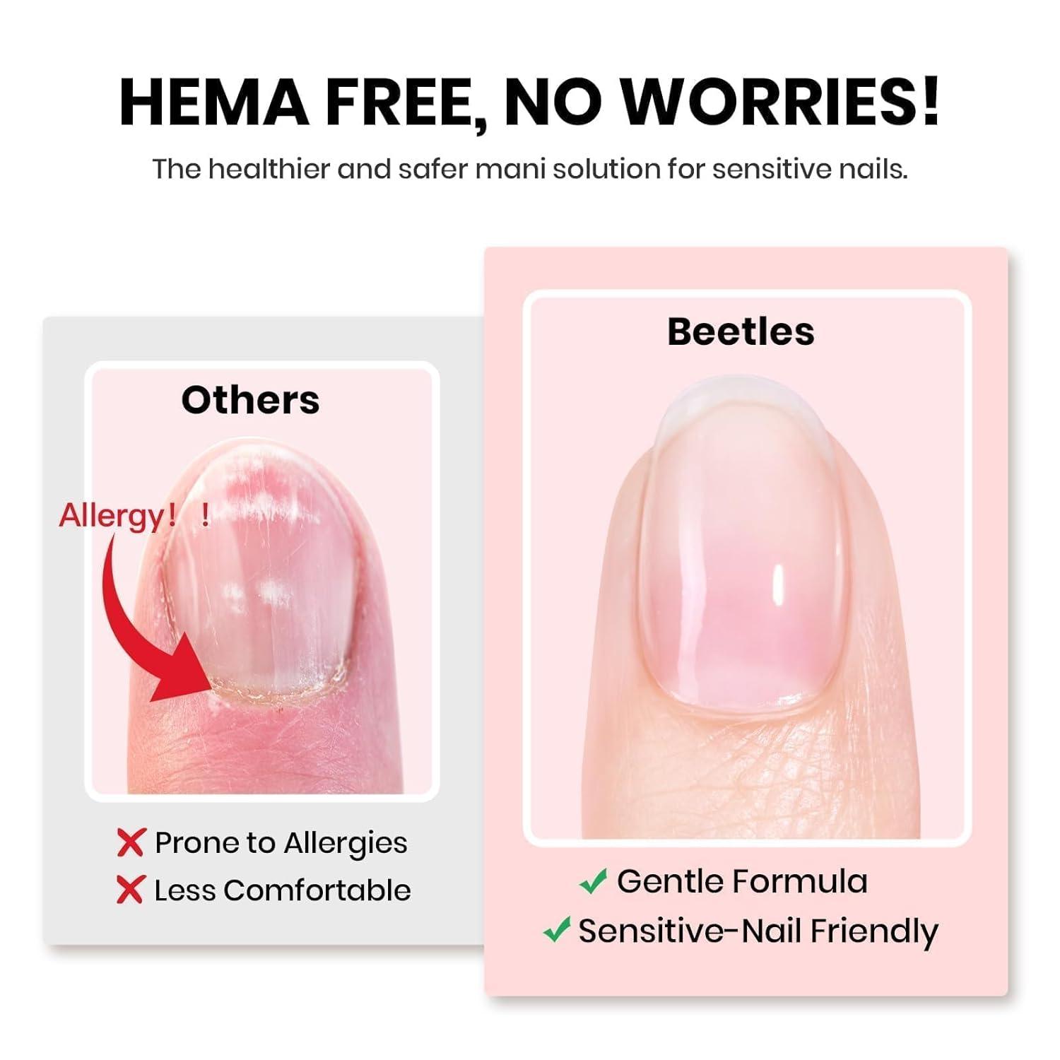 HEMA-Free & Gentle — Designed for Sensitive Nails: This 15ml nail prep & glue set is completely HEMA-Free, providing a gentler alternative for beginners and sensitive users. Whether you're doing nail tips or gel extensions, enjoy a smooth, irritation-free preparation every time.