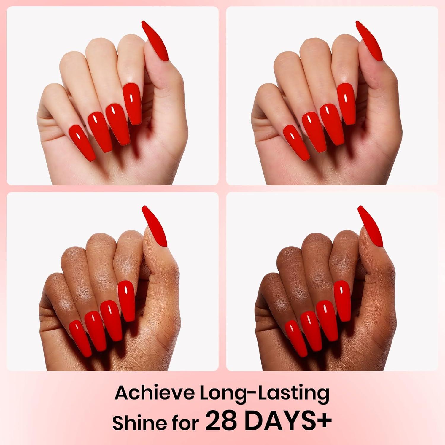 Speed Curing with LED Nail Lamp: The gel nail polish kit need to be cured under LED light. Base and Top coat required. Average for LED light 60-120 secs.