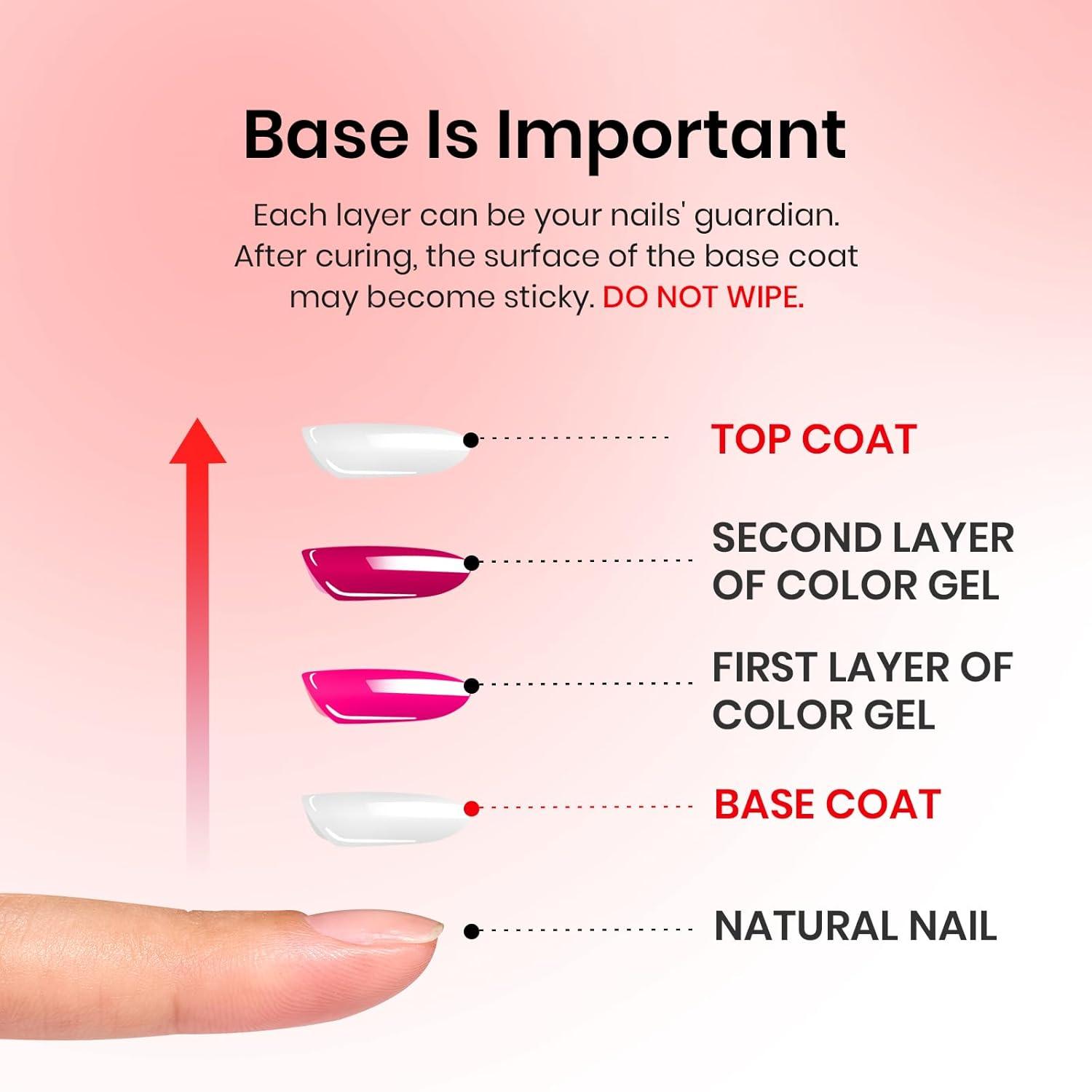 Easy Application and Good Tenacity: With proper application, it lasts at least 28+days. This item is UV gel. It is still sticky after curing. It must be used with a base coat and top coat! This item does not include a base&top coat, which needs to be purchased separately.
