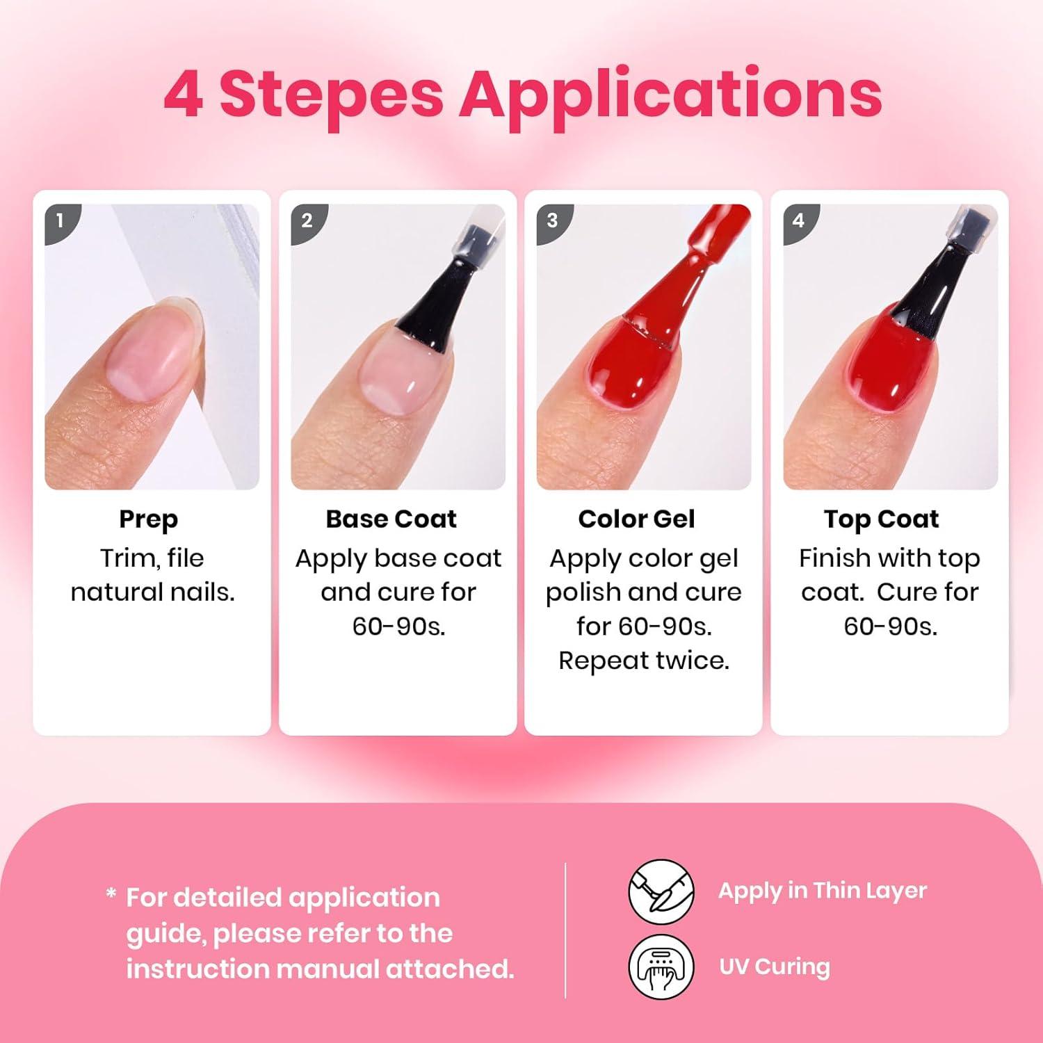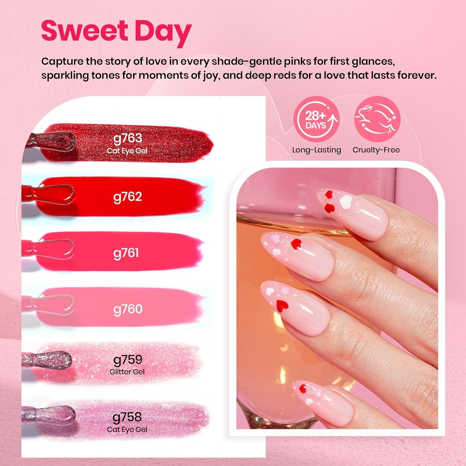 imageBeetles 80 Pcs Gel Nail Polish Kit with U V Light 20 Color Jelly Gel Nail Polish Set Milky Nude Red Purple Glitter Sheer Daylight Nails Kit with Cat Eye Top Coat Rubber Base Women Teens Girls GiftsSweet Date