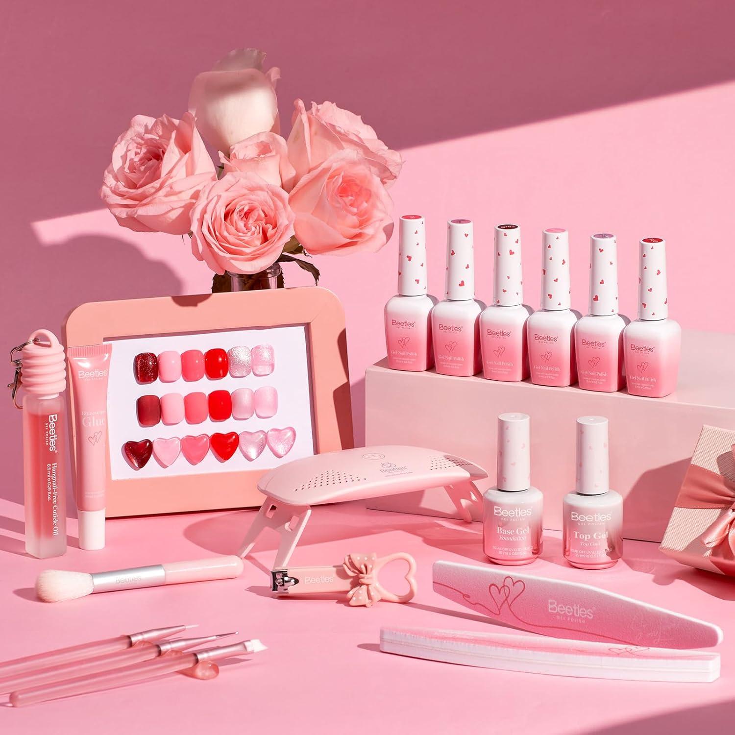 Beetles 80 Pcs Gel Nail Polish Kit with U V Light -20 Color Jelly Gel Nail Polish Set Milky Nude Red Purple Glitter Sheer Daylight Nails Kit with Cat Eye Top Coat Rubber Base, Women Teens Girls Gifts(Sweet Date)