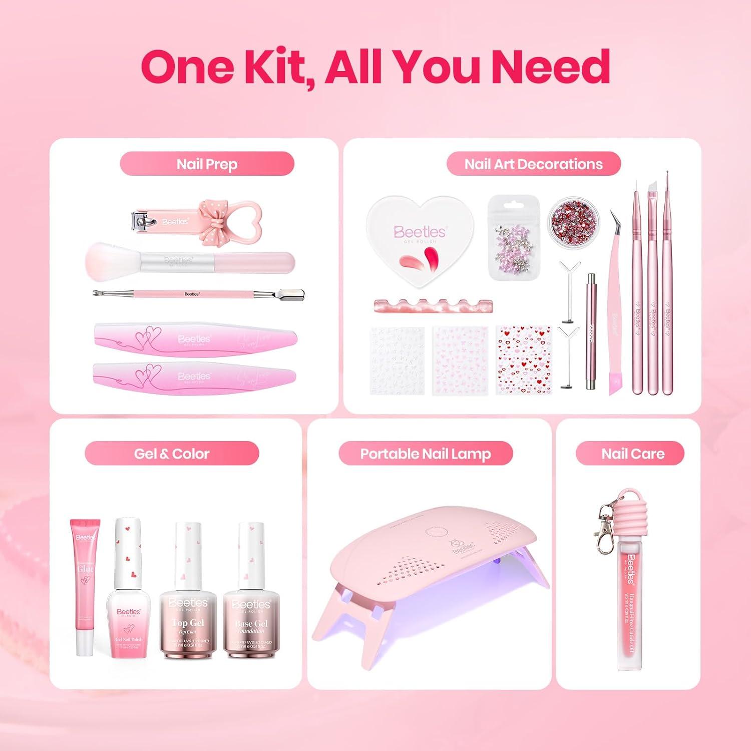 Beetles 80 Pcs Gel Nail Polish Kit with U V Light -20 Color Jelly Gel Nail Polish Set Milky Nude Red Purple Glitter Sheer Daylight Nails Kit with Cat Eye Top Coat Rubber Base, Women Teens Girls Gifts(Spring Energetic Movie)