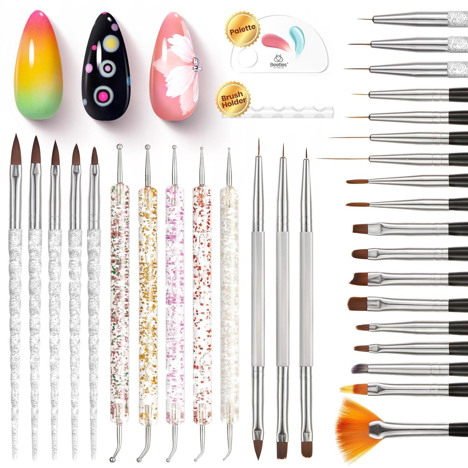 Beetles Blooming Gel for Nails - Easy Blooming Nail Art Gel for Floral & Marble Designs, UV/LED Cure Soak Off DIY at Home Gift for Women(Nail Art Brushes 31pcs)