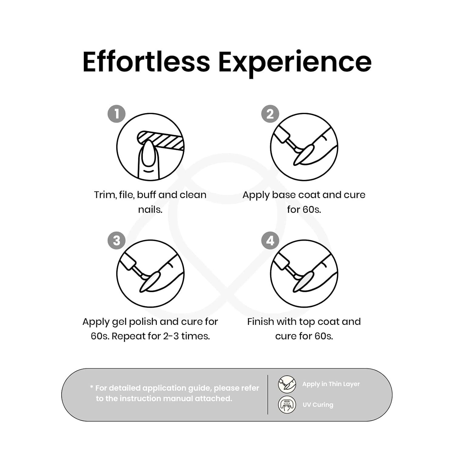 【Speed Curing with Uv/Led Lamp】The brown cat eye gel polish kit needs to be cured under the uv/led light. The average time for uv/led lights is 60-120 secs. It remains sticky after curing and must be used with a base coat and top coat! (Note:This item does not include a base&top coat, which needs to be purchased separately)