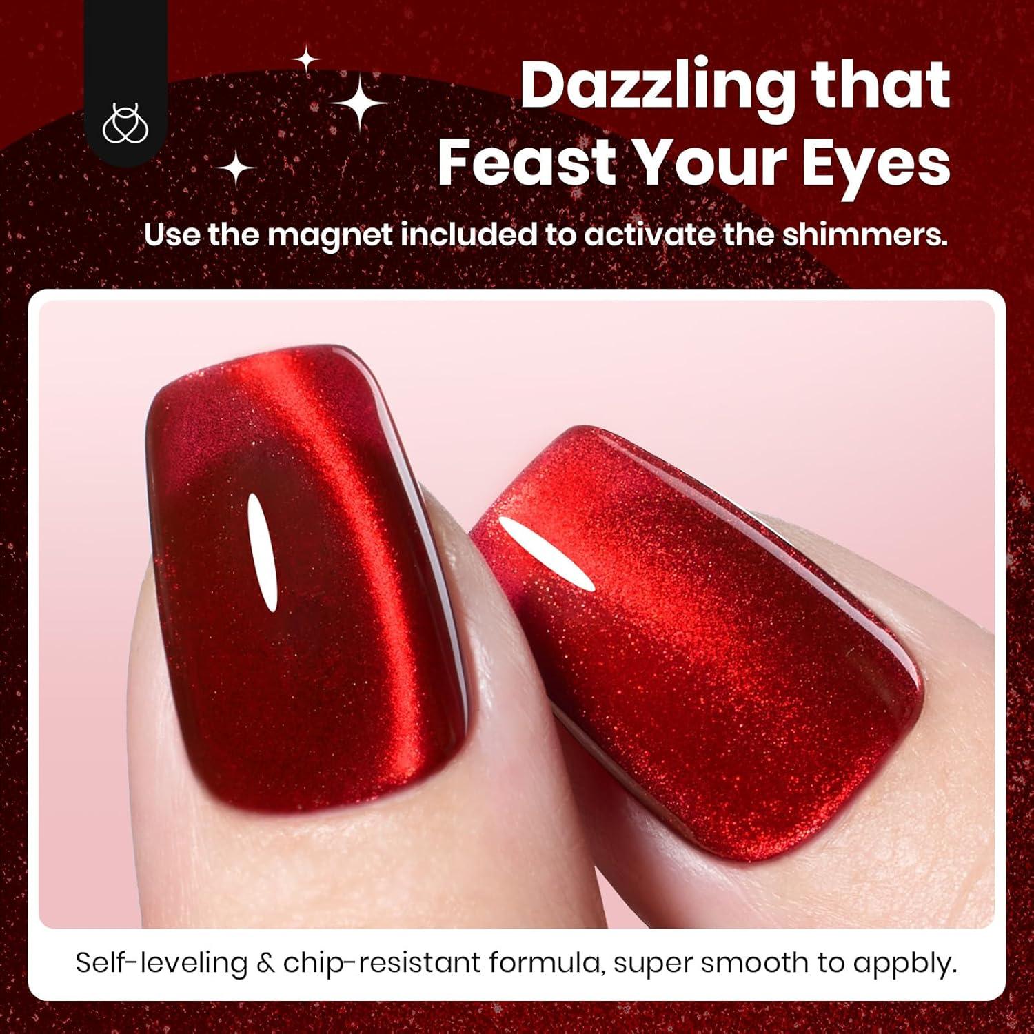 imageBeetles Brown Cat Eye Gel Nail Polish  Velvet Cinnamon Cat Eye Gel Polish 15ML Fall Brown Mocha Mousse Magnetic Glitter Gel Polish with Magnet Soak Off UV French Nail Art Manicure Gift for WomenARuby Red