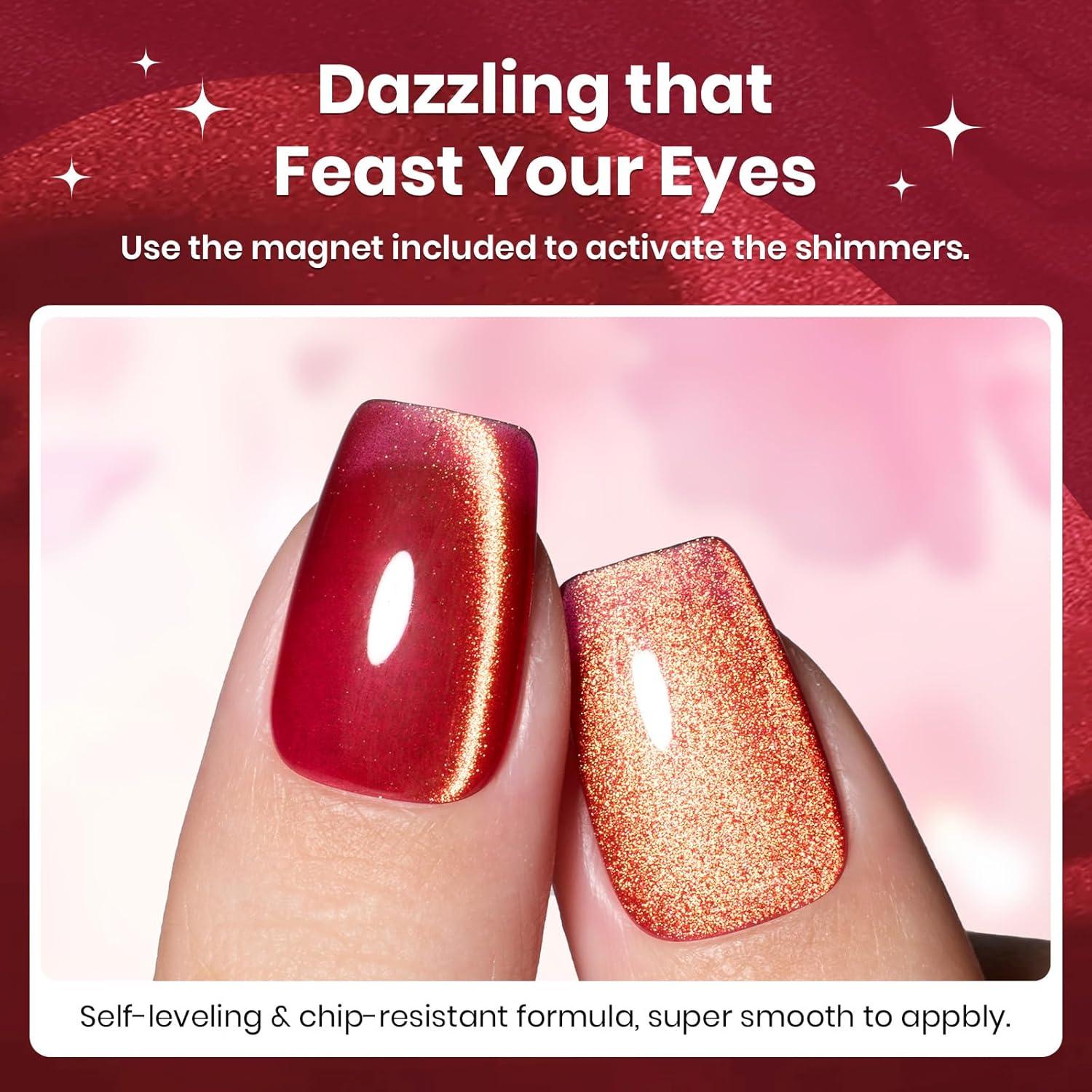 【28 Days Long Lasting】Beetles brown cat eye gel polish lasts for 28+ days with high gloss shine under proper application. Strong, long-lasting, and flexible with excellent adhesion and flawless results without the need for professional help(Tips: Place the magnetic stick over the surface about 3-5mm for 5-10 seconds to get your desired effect)
