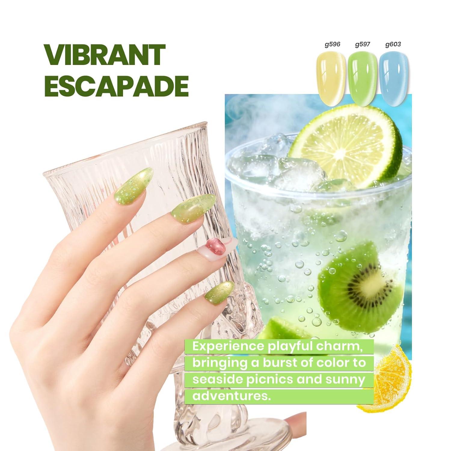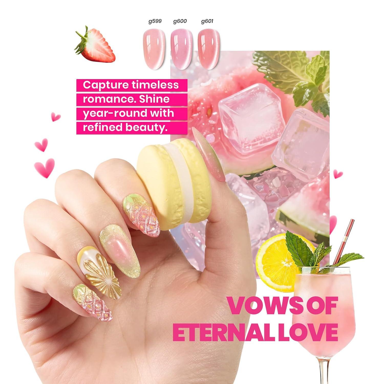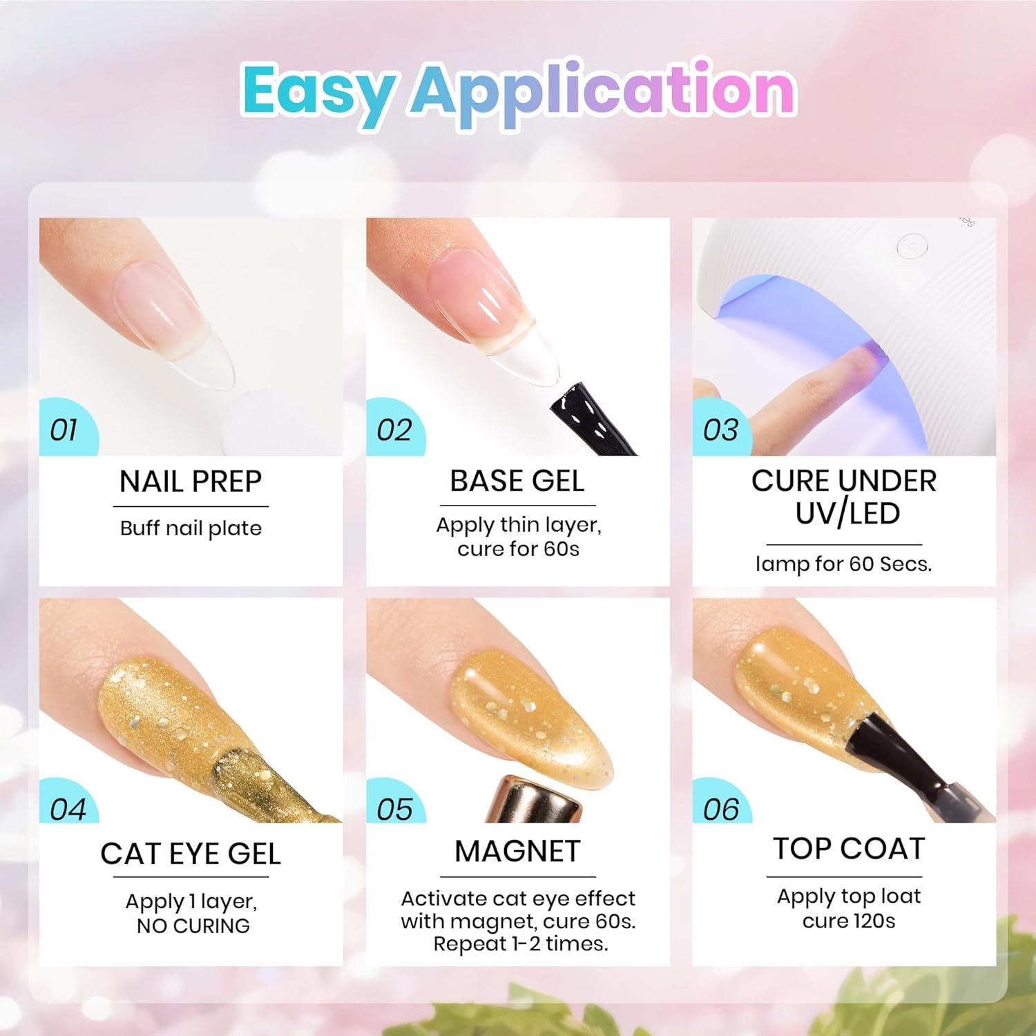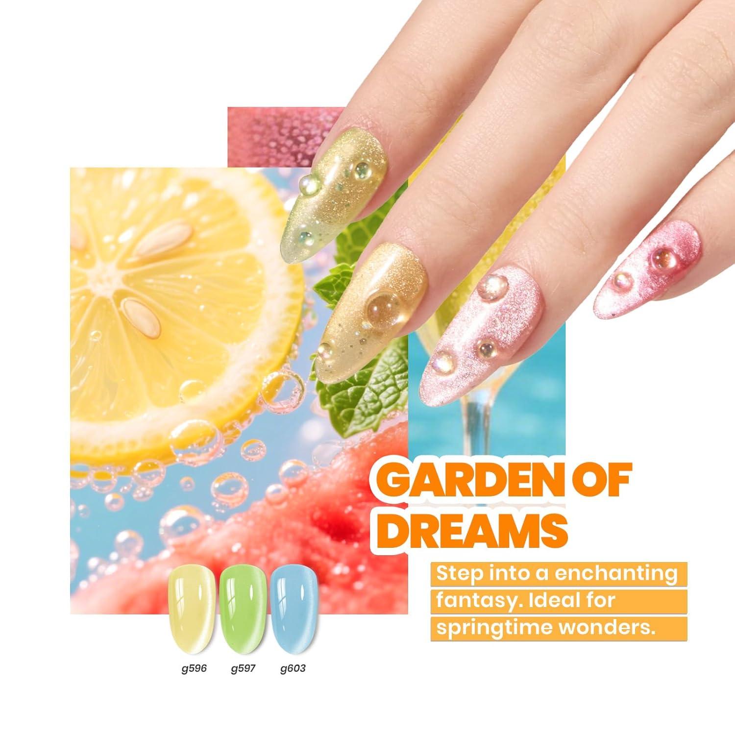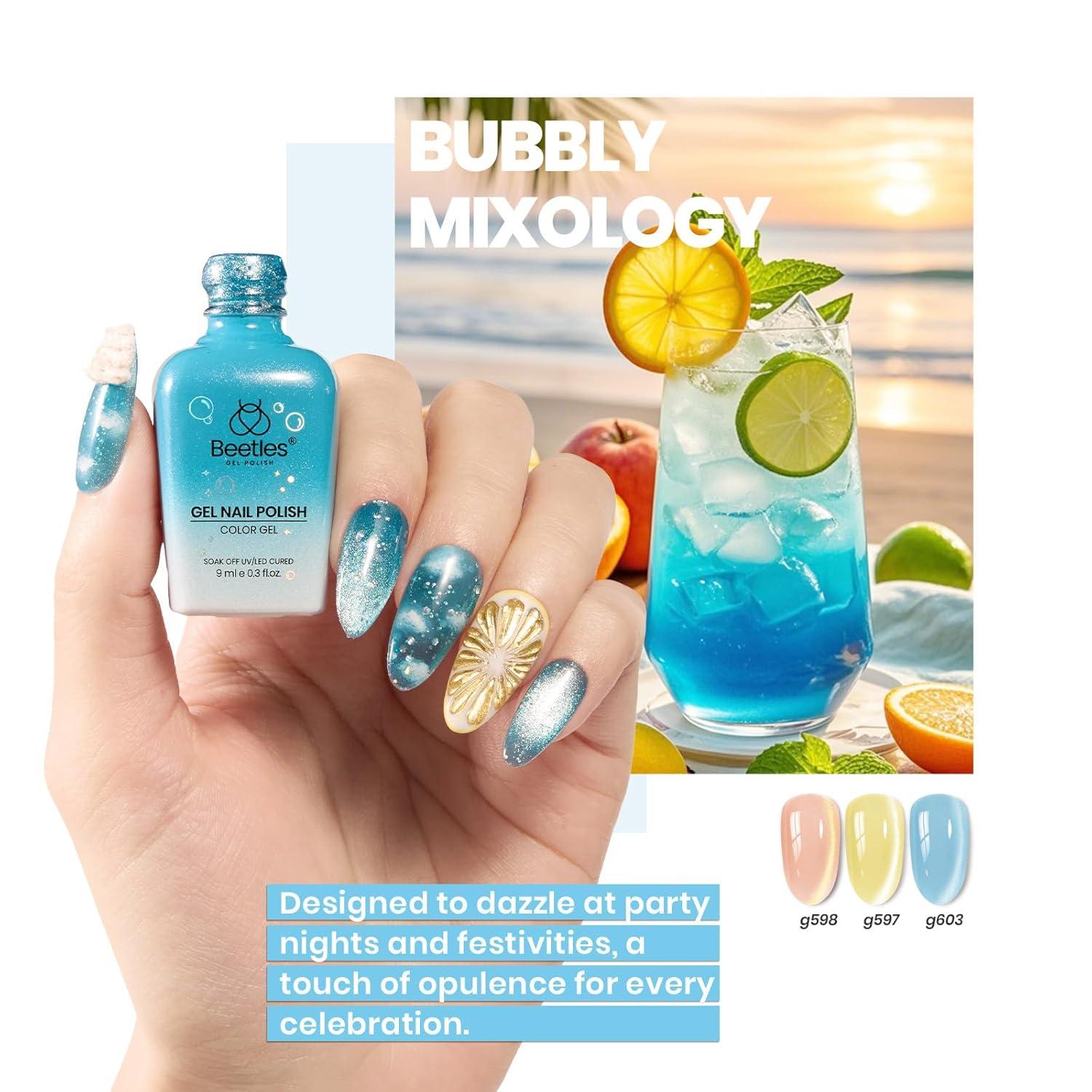 Beetles Bubbly Mixology Cat Eye Gel Nail Polish Set - 8 Colors Pastel Spring Shimmer Glitter Gel Polish Kit Pink Blue Orange Green Yellow Purple Velvet Gel Soak Off UV DIY Manicure Gift for Women(0-0-0-Bubbly Mixology)