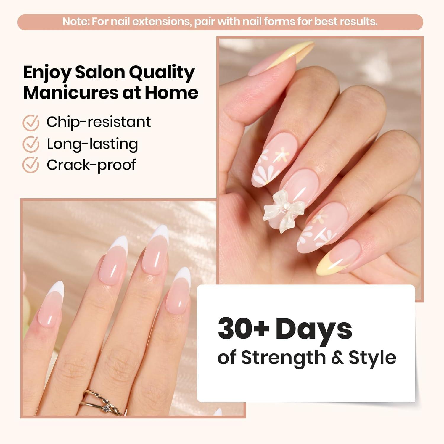 30 Days Long Wearing: Beetles nail thickening builder nail gel is made of upgraded formula, Say Goodbye to Peel-off problems. High durability clear gel builder can stay last longer and brings you natural, strong, flexible, and feather-light nails. Long-lasting for 30+ days with proper application.(Note: Need to be cured under UV & LED lamp for 60-120s)