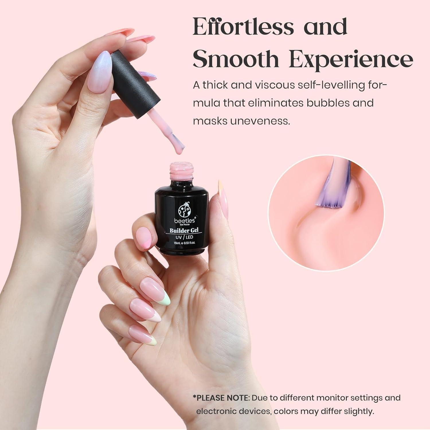 QUICK AND EASY APPLICATION: Create classy manicures with Beetles Builder Gel. Brush in, expand, sculpt nails as desired and cure for 60 seconds LED or 2 minutes UV to keep it in place. Its light self-leveling properties assist in an effortless application on the nail. Once you attach all the nail extensions, proceed with polish and whatever designs you want. Easy peasy! After curing, it is normal for Beetles Builder Gel to retain a slight stickiness.