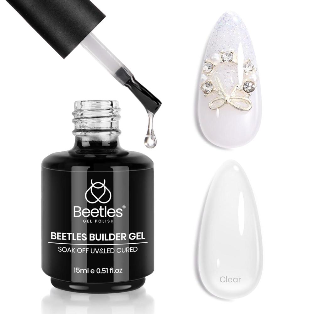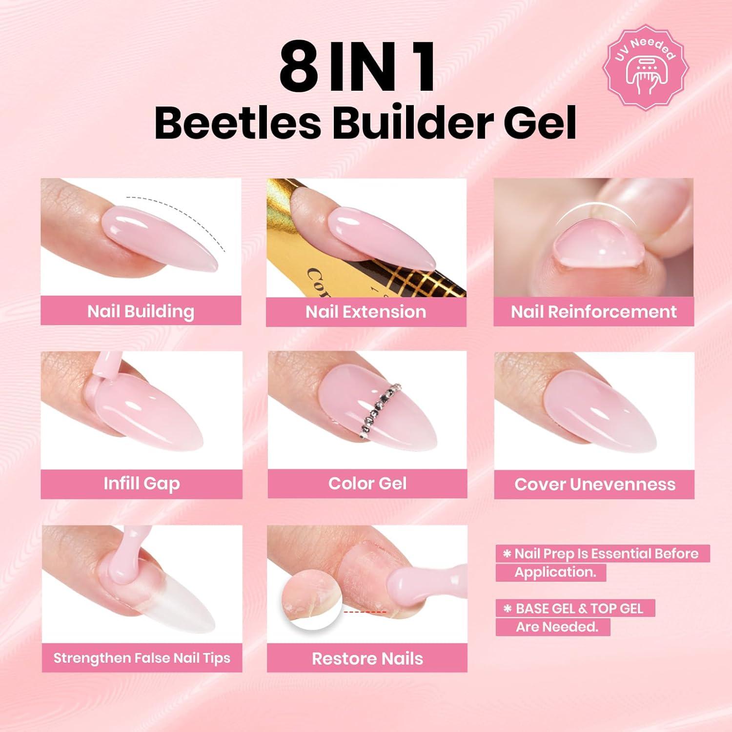 Beetles Builder Gel Nail Kit,Juicy Tint 6 Colors Jelly Pink Nude Builder Gels Apex Thickening Extension Strengthen Weak Nails for Beginners DIY Salon,Spring Nails at Home,UV & LED Lamp Needed(Clear)