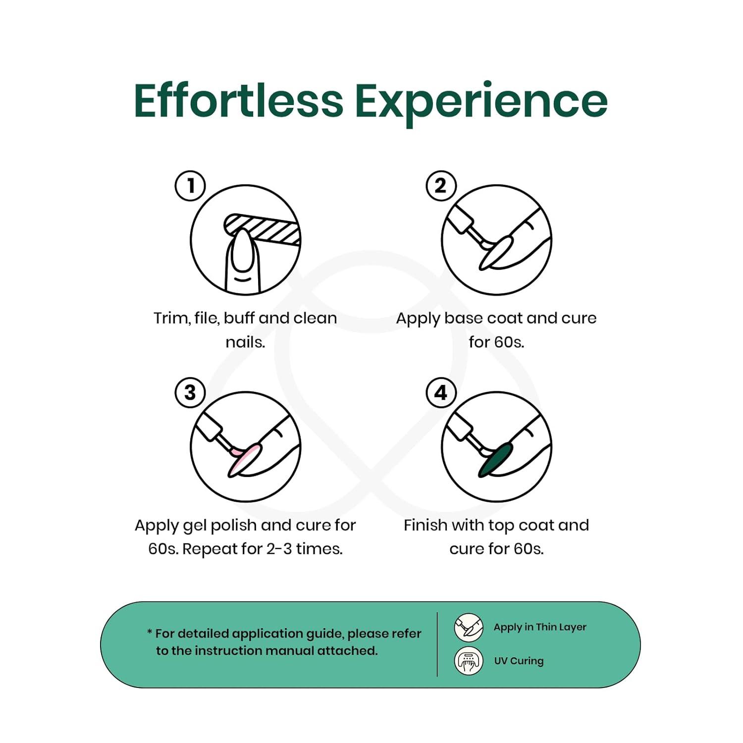 【Sheer, Breathable & Buildable】Apply several layers to build up the color from clear translucent to solid opaque. Each layer, whether one, two, or three layers, creates a different effect—never heavy, never chalky, always natural.This nude gel polish is UV gel and need to be cured 60-120s. (Note: It is still sticky after curing and must be used with a base coat and top coat, which are not included and need to be purchased separately)