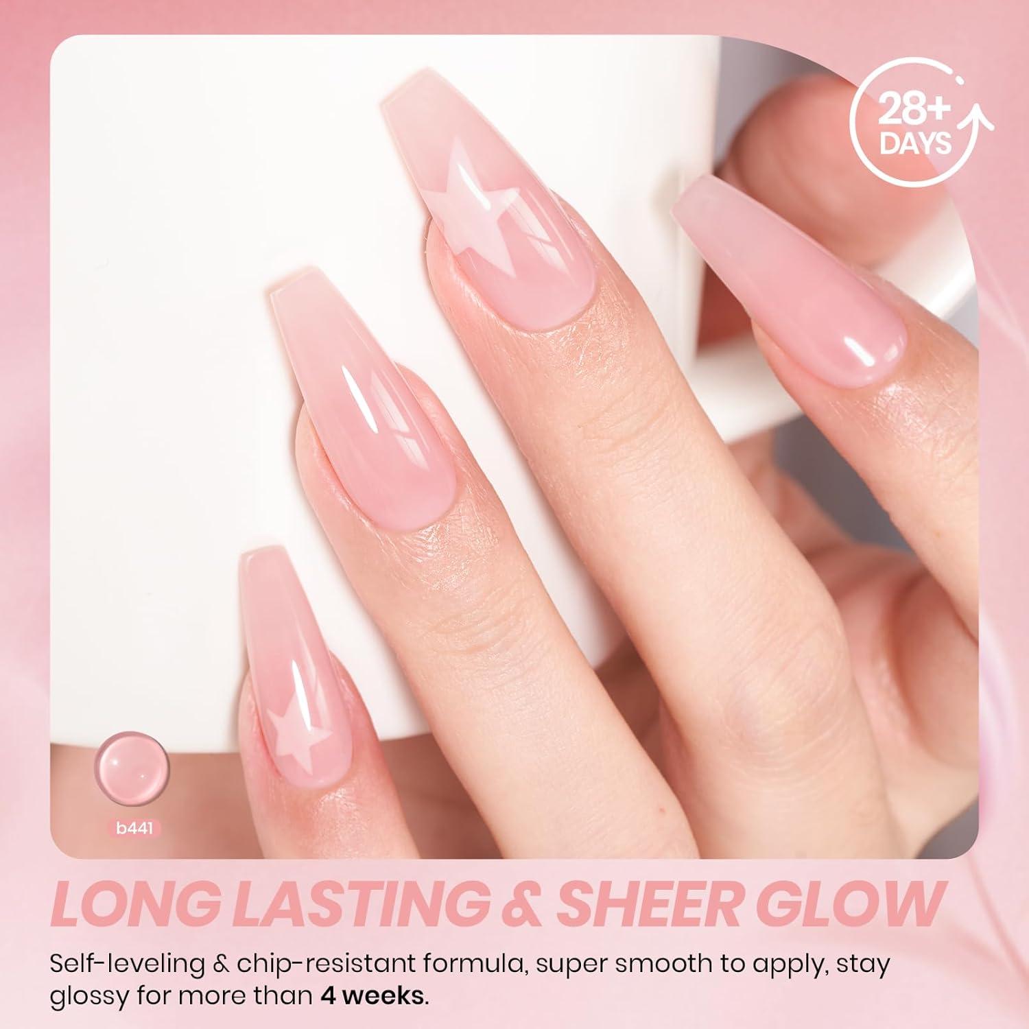 【Sheer, Breathable & Buildable】Apply several layers to build up the color from clear translucent to solid opaque. Each layer, whether one, two, or three layers, creates a different effect—never heavy, never chalky, always natural.This nude gel polish is UV gel and need to be cured 60-120s. (Note: It is still sticky after curing and must be used with a base coat and top coat, which are not included and need to be purchased separately)