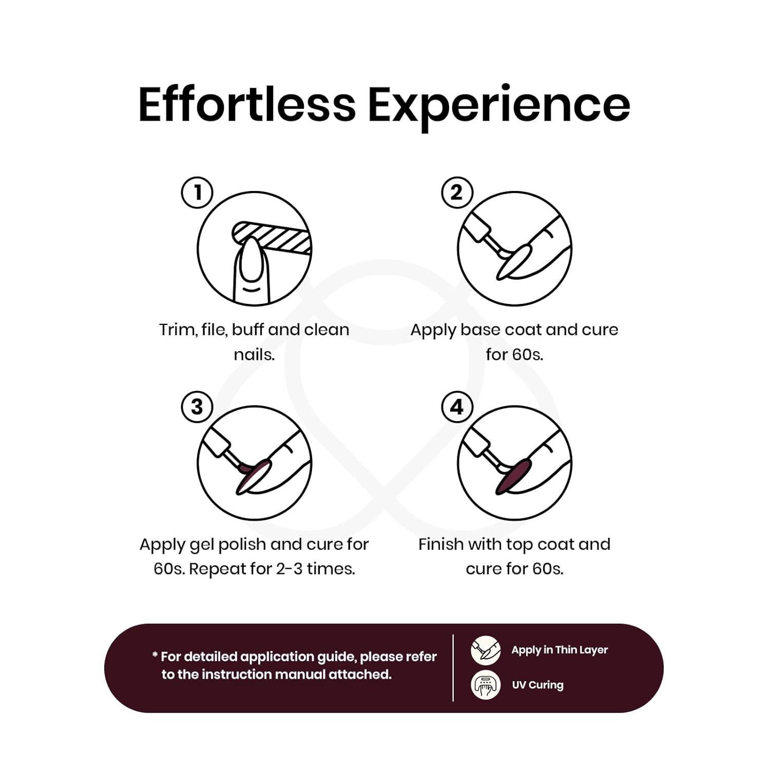【Sheer, Breathable & Buildable】Apply several layers to build up the color from clear translucent to solid opaque. Each layer, whether one, two, or three layers, creates a different effect—never heavy, never chalky, always natural.This nude gel polish is UV gel and need to be cured 60-120s. (Note: It is still sticky after curing and must be used with a base coat and top coat, which are not included and need to be purchased separately)