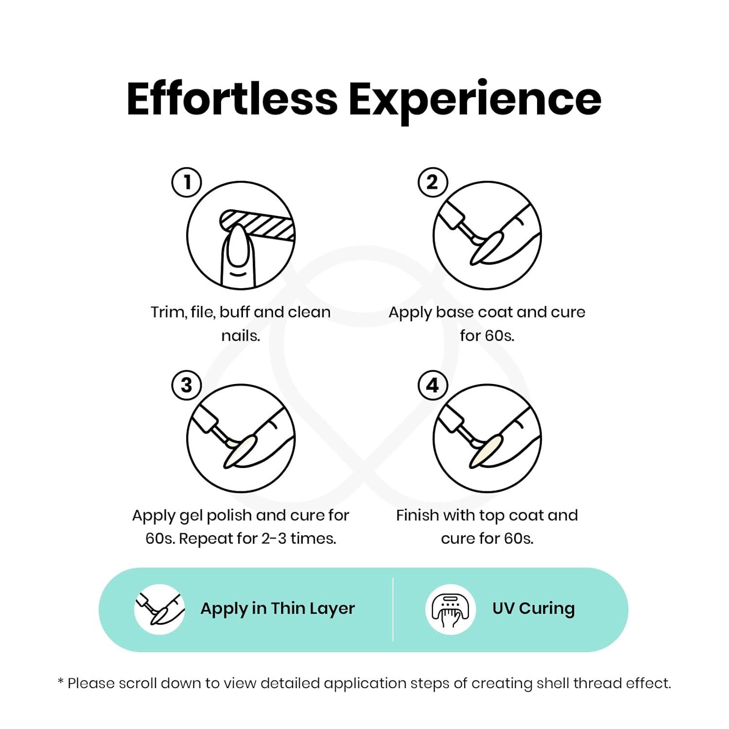 【Sheer, Breathable & Buildable】Apply several layers to build up the color from clear translucent to solid opaque. Each layer, whether one, two, or three layers, creates a different effect—never heavy, never chalky, always natural.This nude gel polish is UV gel and need to be cured 60-120s. (Note: It is still sticky after curing and must be used with a base coat and top coat, which are not included and need to be purchased separately)