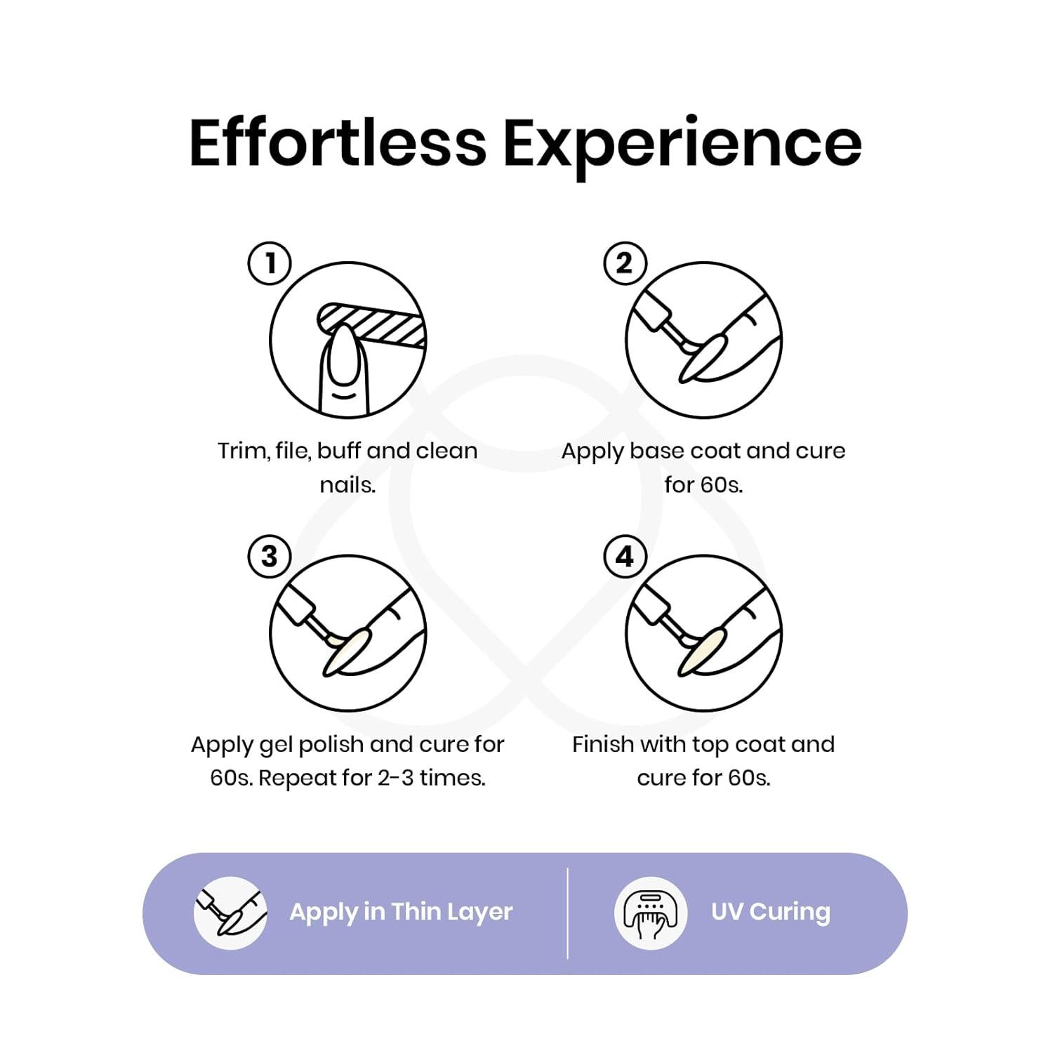 【Sheer, Breathable & Buildable】Apply several layers to build up the color from clear translucent to solid opaque. Each layer, whether one, two, or three layers, creates a different effect—never heavy, never chalky, always natural.This nude gel polish is UV gel and need to be cured 60-120s. (Note: It is still sticky after curing and must be used with a base coat and top coat, which are not included and need to be purchased separately)