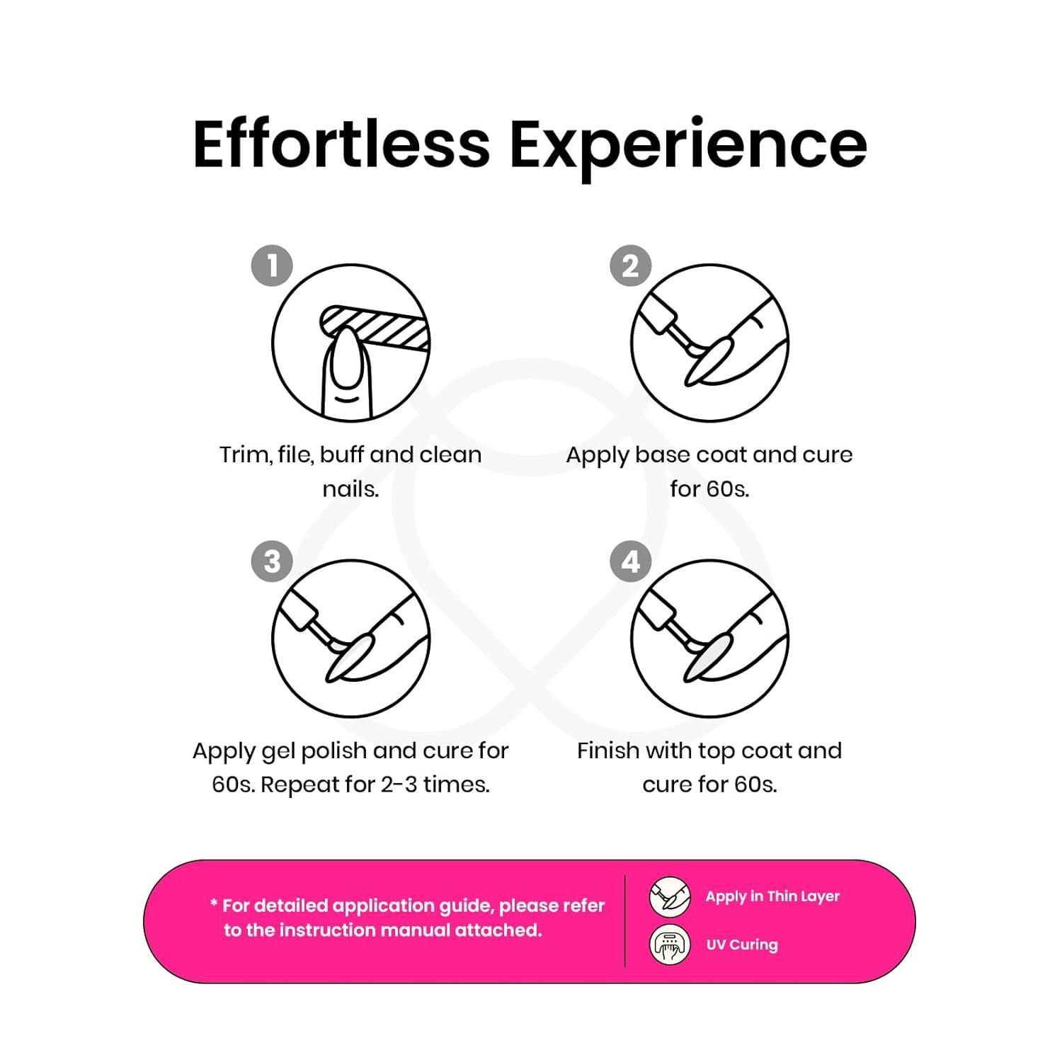【Sheer, Breathable & Buildable】Apply several layers to build up the color from clear translucent to solid opaque. Each layer, whether one, two, or three layers, creates a different effect—never heavy, never chalky, always natural.This nude gel polish is UV gel and need to be cured 60-120s. (Note: It is still sticky after curing and must be used with a base coat and top coat, which are not included and need to be purchased separately)