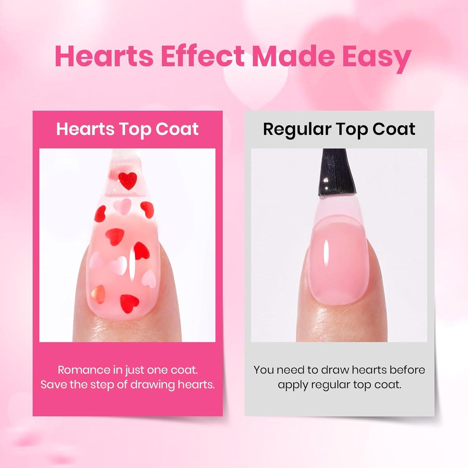 Beetles Butterfly Gel Top Coat 15ml - Floral Sprite Pink Butterfly Glitter Shine No Wipe Top Coat Long-Lasting for Gel Polish Sparkle Soak Off UV LED Gift for Women(0-0-Clear Heart Glitter Top Coat)