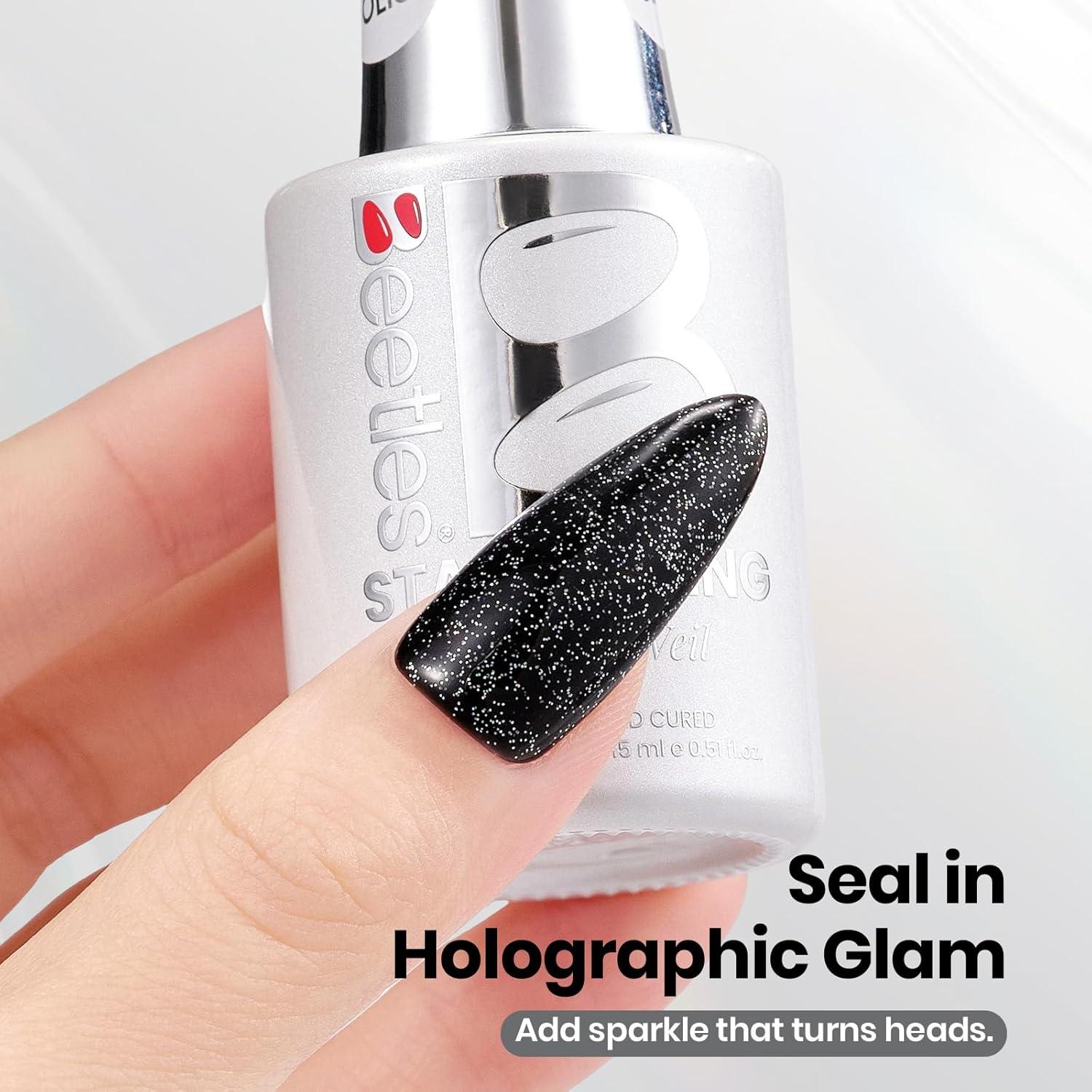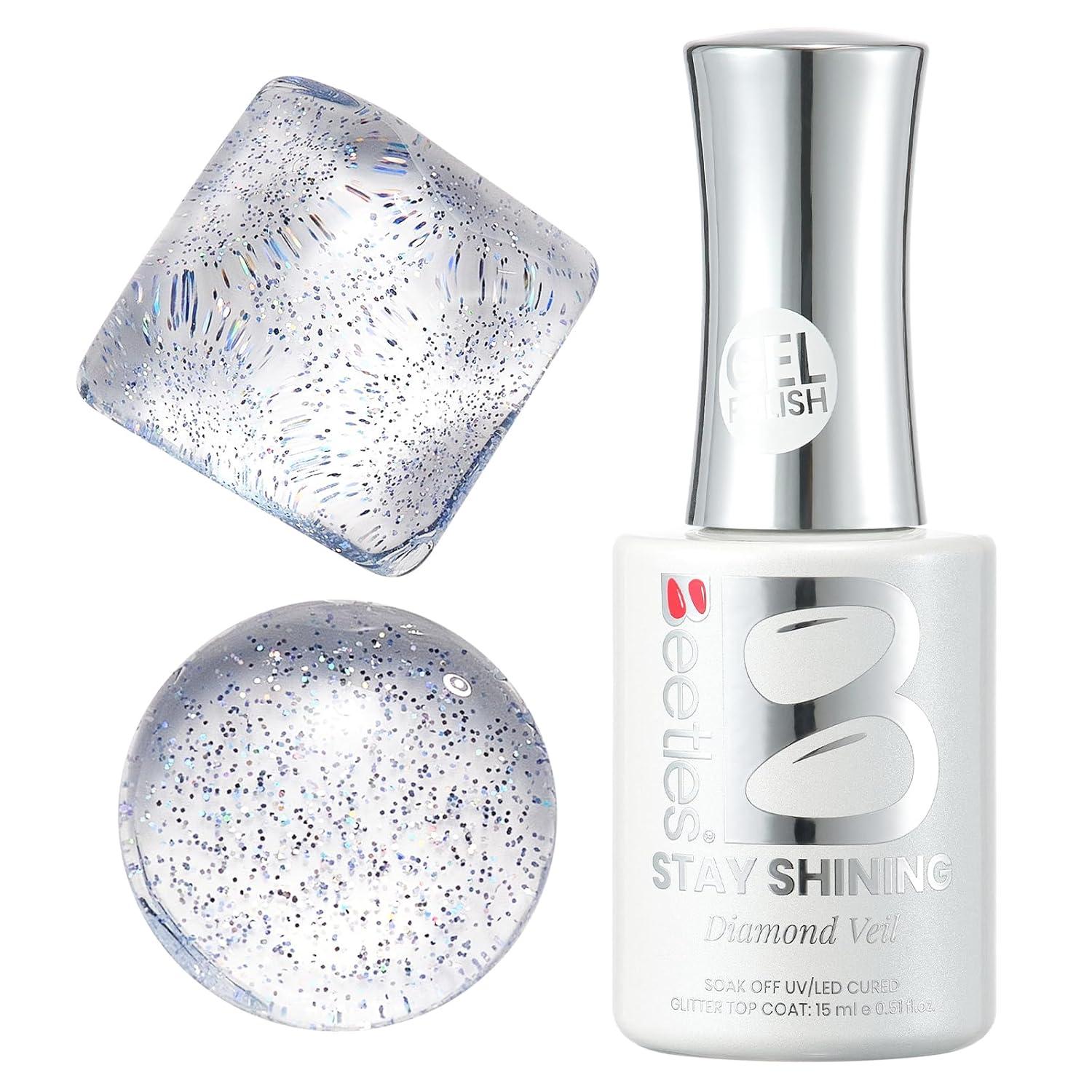 imageBeetles Butterfly Gel Top Coat 15ml  Floral Sprite Pink Butterfly Glitter Shine No Wipe Top Coat LongLasting for Gel Polish Sparkle Soak Off UV LED Gift for WomenClear Glitter Gel Top Coat