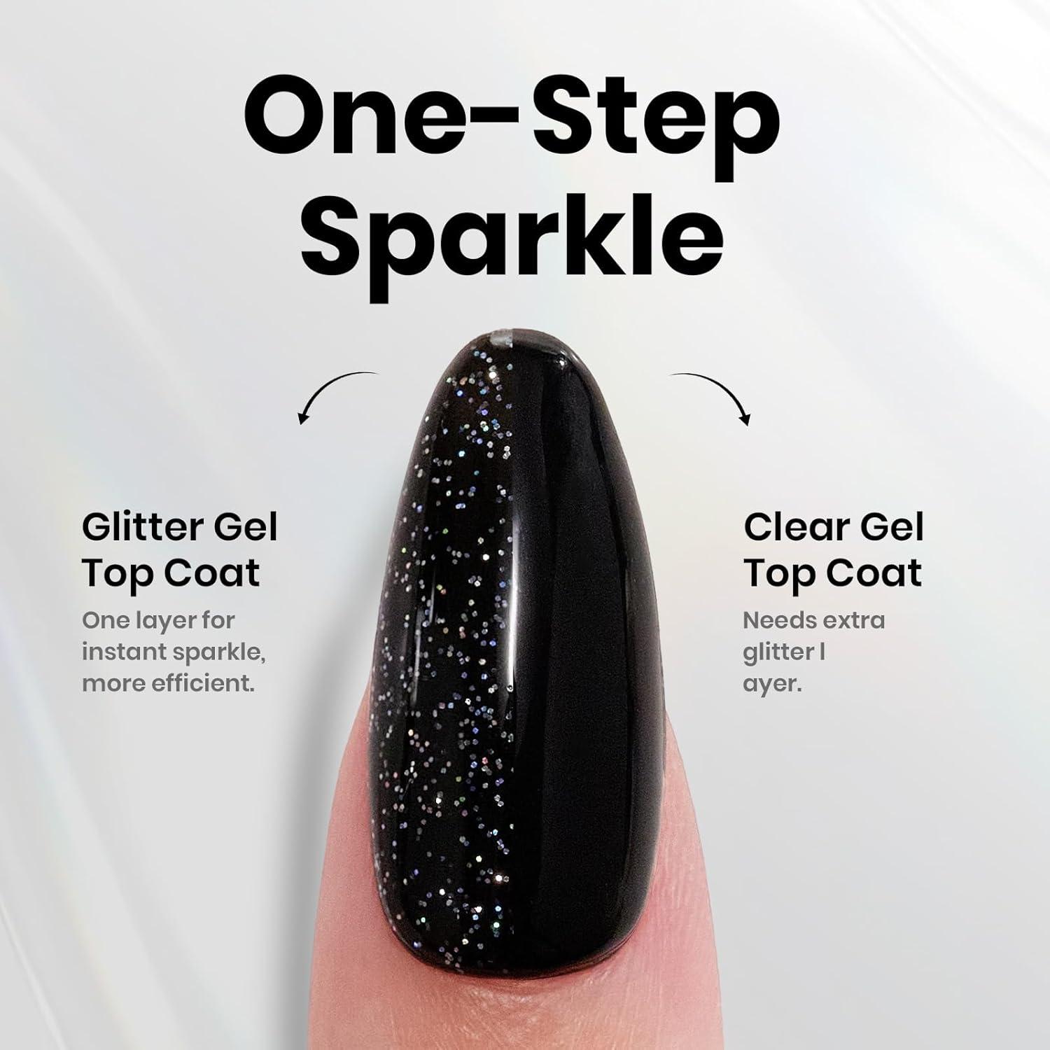 Beetles Butterfly Gel Top Coat 15ml – Floral Sprite Pink Butterfly Glitter Shine No Wipe Top Coat Long-Lasting for Gel Polish Sparkle Soak Off UV LED Gift for Women(Clear Glitter Gel Top Coat)