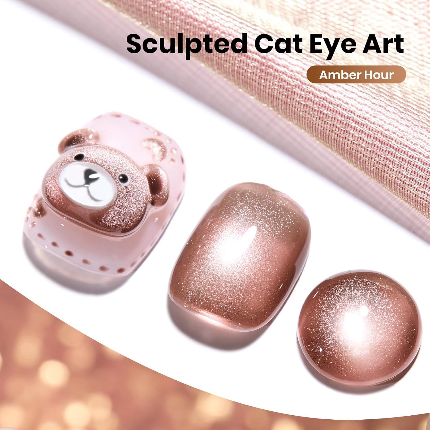 imageBeetles Cat Eye Gel Nail Polish  15ML 9D Cat Eye Chameleon Blue Glitter Gel Polish Magnetic Shimmer Effect Soak Off UV DIY Holo Blue Dream Manicure Gift for WomenABrownAmber Hour