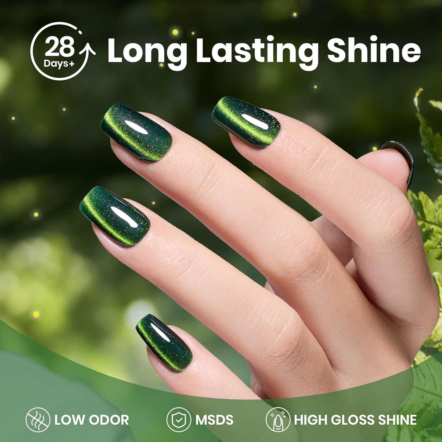 【28 Days Long Lasting】Beetles chameleon blue cat eye gel polish lasts for 28+ days with high gloss shine under proper application. Strong, long-lasting, and flexible with excellent adhesion and flawless results without the need for professional help(Tips: Place the magnetic stick over the surface about 3-5mm for 5-10 seconds to get your desired effect)