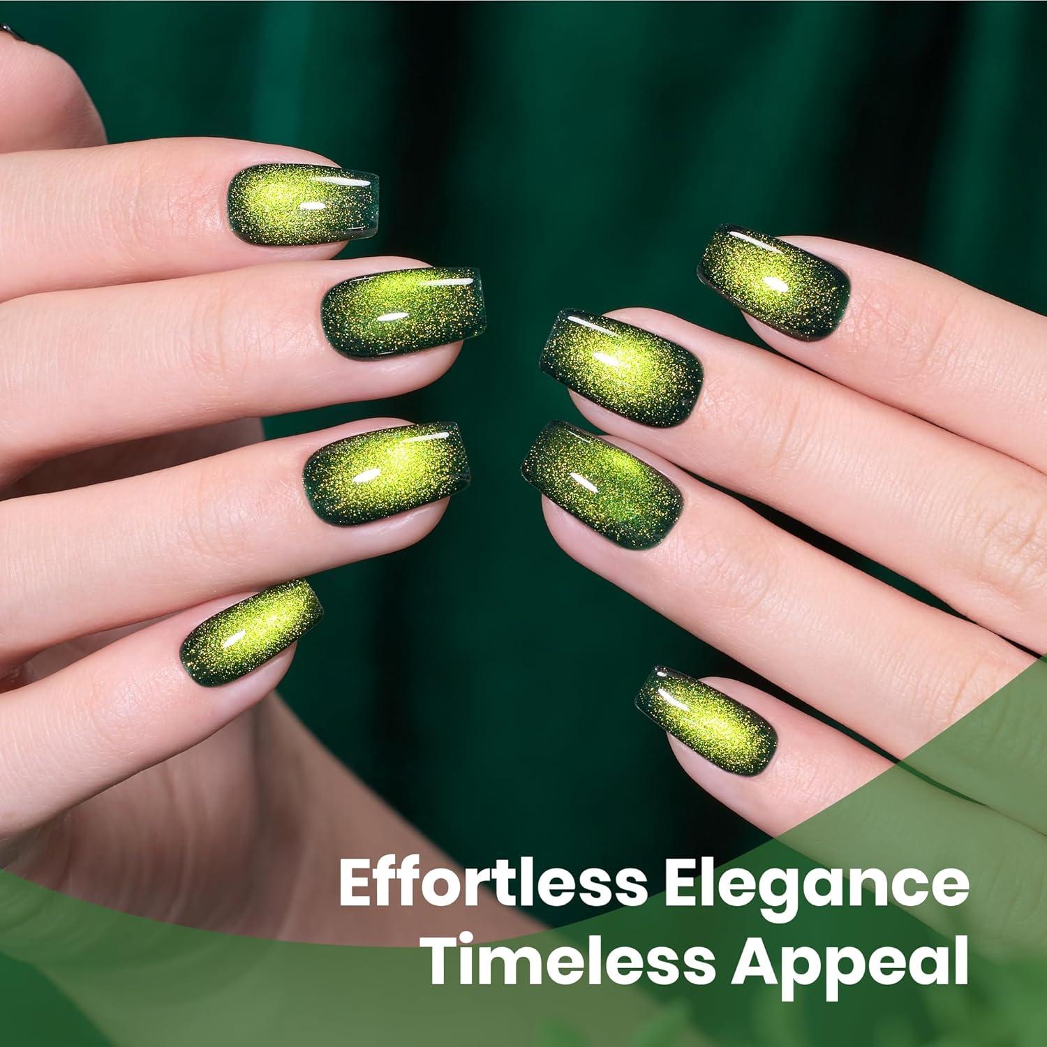 Beetles Cat Eye Gel Nail Polish – 15ML 9D Cat Eye Chameleon Blue Glitter Gel Polish Magnetic Shimmer Effect Soak Off UV DIY Holo Blue Dream Manicure Gift for Women(A-Green-Pistachio Gleam)