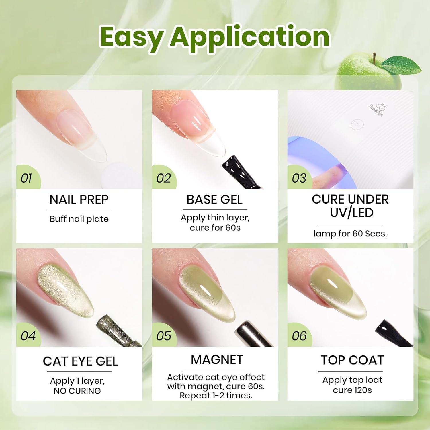 【Warm Tips】Please conduct a skin test before use with blue cat eye gel nail polish. Professionally formulated and only used for nails. Place the magnetic stick over the surface about 3-5mm for 5-10 secs to get your desired effect! After repeatedly sucking the cat eye color gel without any effect, the magnetic powder will become ineffective. You can add a layer to suck the cat eye gel again