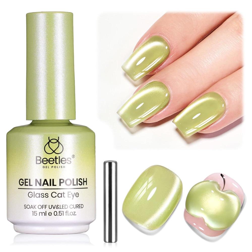 imageBeetles Cat Eye Gel Nail Polish  15ML 9D Cat Eye Chameleon Blue Glitter Gel Polish Magnetic Shimmer Effect Soak Off UV DIY Holo Blue Dream Manicure Gift for WomenAGreenPistachio Gleam