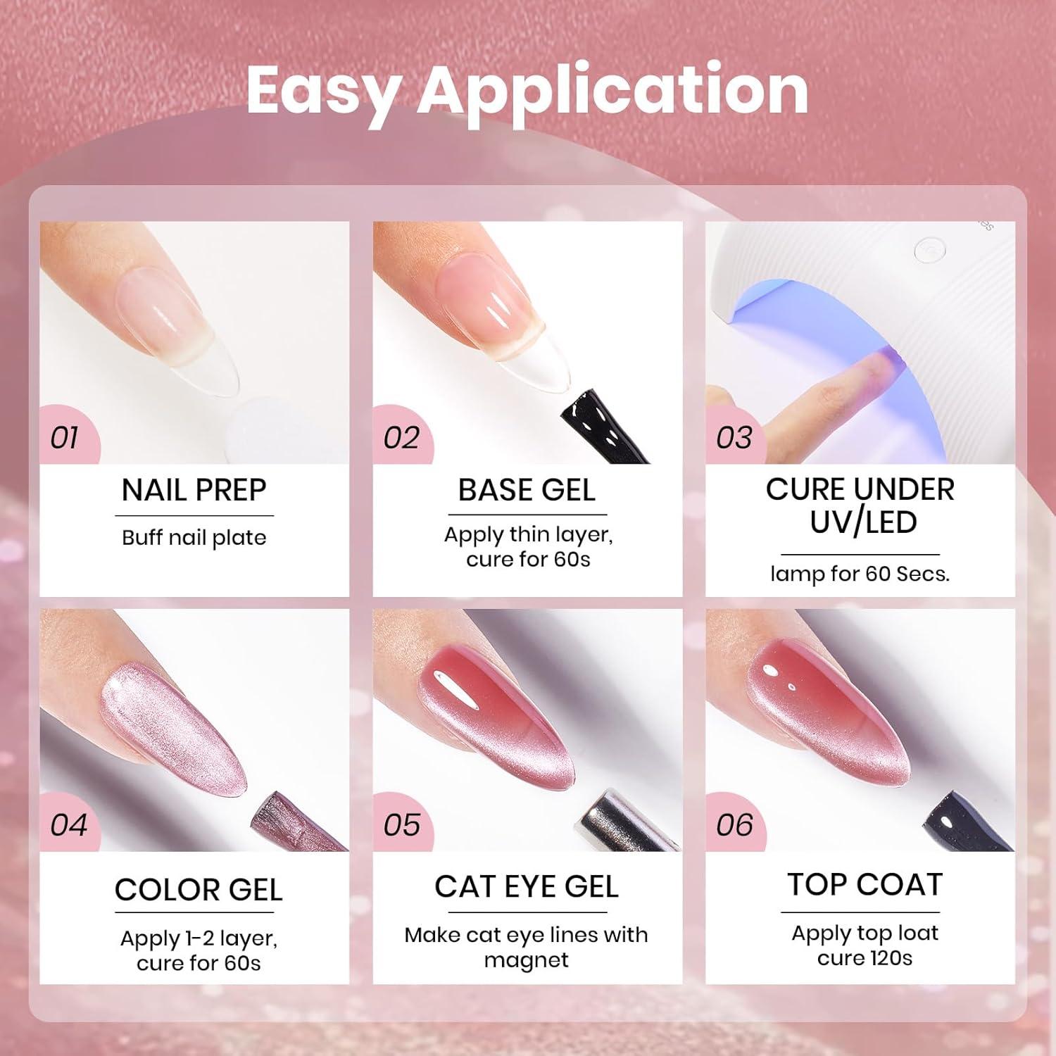 【Warm Tips】Please conduct a skin test before use with blue cat eye gel nail polish. Professionally formulated and only used for nails. Place the magnetic stick over the surface about 3-5mm for 5-10 secs to get your desired effect! After repeatedly sucking the cat eye color gel without any effect, the magnetic powder will become ineffective. You can add a layer to suck the cat eye gel again