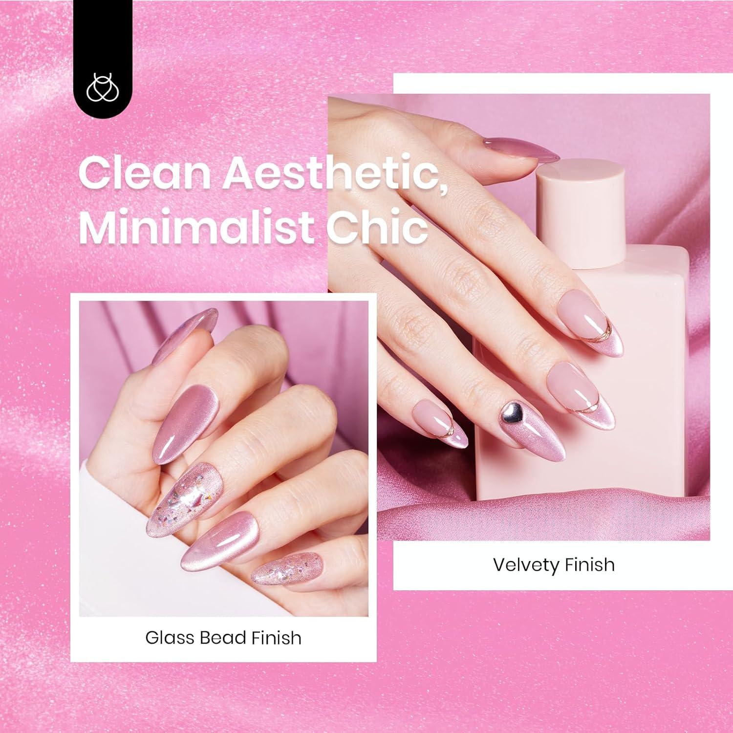 imageBeetles Cat Eye Gel Nail Polish  15ML 9D Cat Eye Chameleon Blue Glitter Gel Polish Magnetic Shimmer Effect Soak Off UV DIY Holo Blue Dream Manicure Gift for WomenBGlass Pink