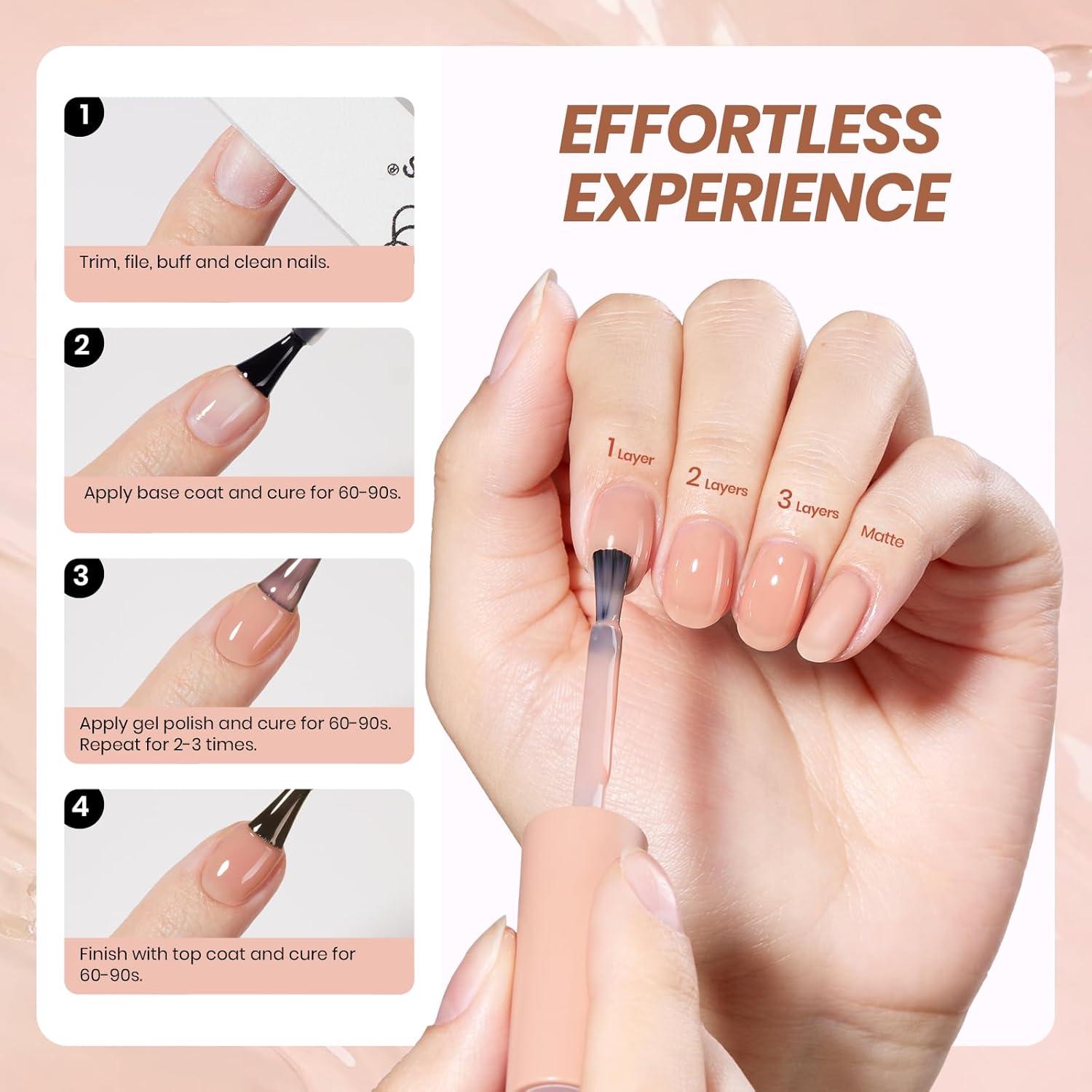 【Speed Curing with Uv/Led Lamp】The blue glitter gel polish kit needs to be cured under the uv/led light. The average time for uv/led lights is 60-120 secs. It remains sticky after curing and must be used with a base coat and top coat! (Note:This item does not include a base&top coat, which needs to be purchased separately)