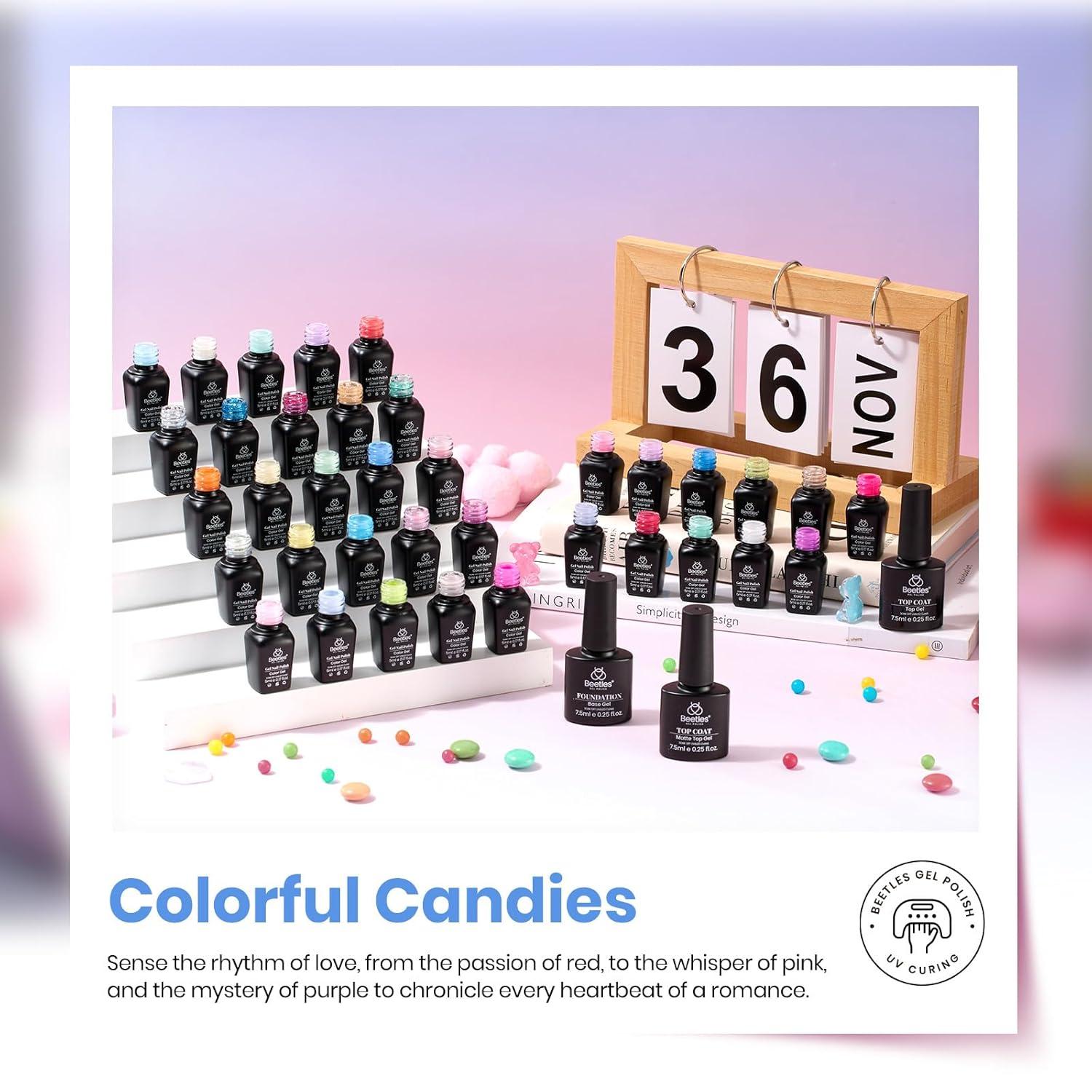 imageBeetles Cat Eye Gel Nail Polish Set  10 Colors Glitter Cat Eye Glint Gel Polish Kit Silver Nude Pink Blue Brown Purple Magnetic Shine Soak Off UV French Nail Art Salon DIY Manicure Gift for WomenColorful Candies36 Colors