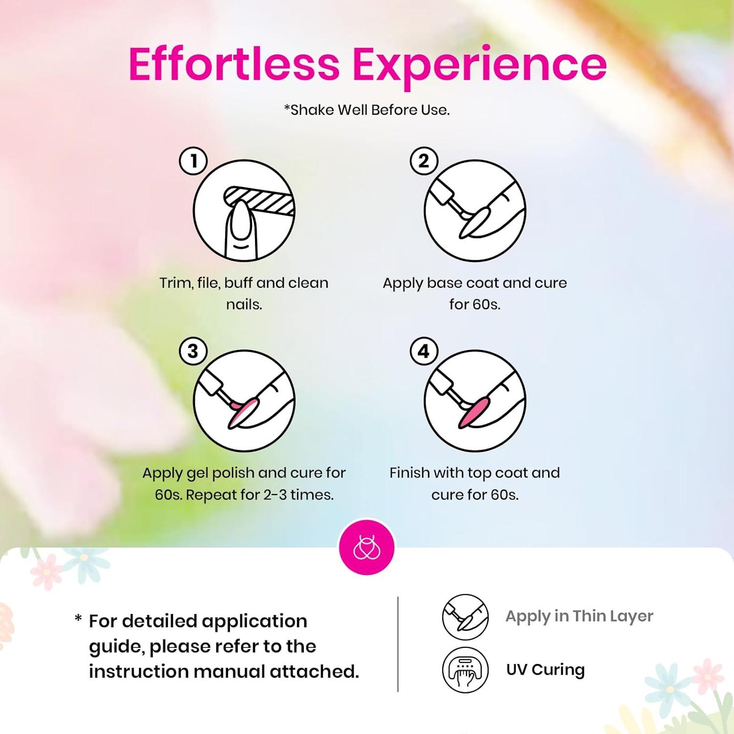 【Speed Curing with Uv/Led Lamp】The cat eye gel polish kit needs to be cured under the uv/led light. The average time for uv/led lights is 60-120 secs. It remains sticky after curing and must be used with a base coat and top coat! (Note:This item does not include a base&top coat, which needs to be purchased separately)