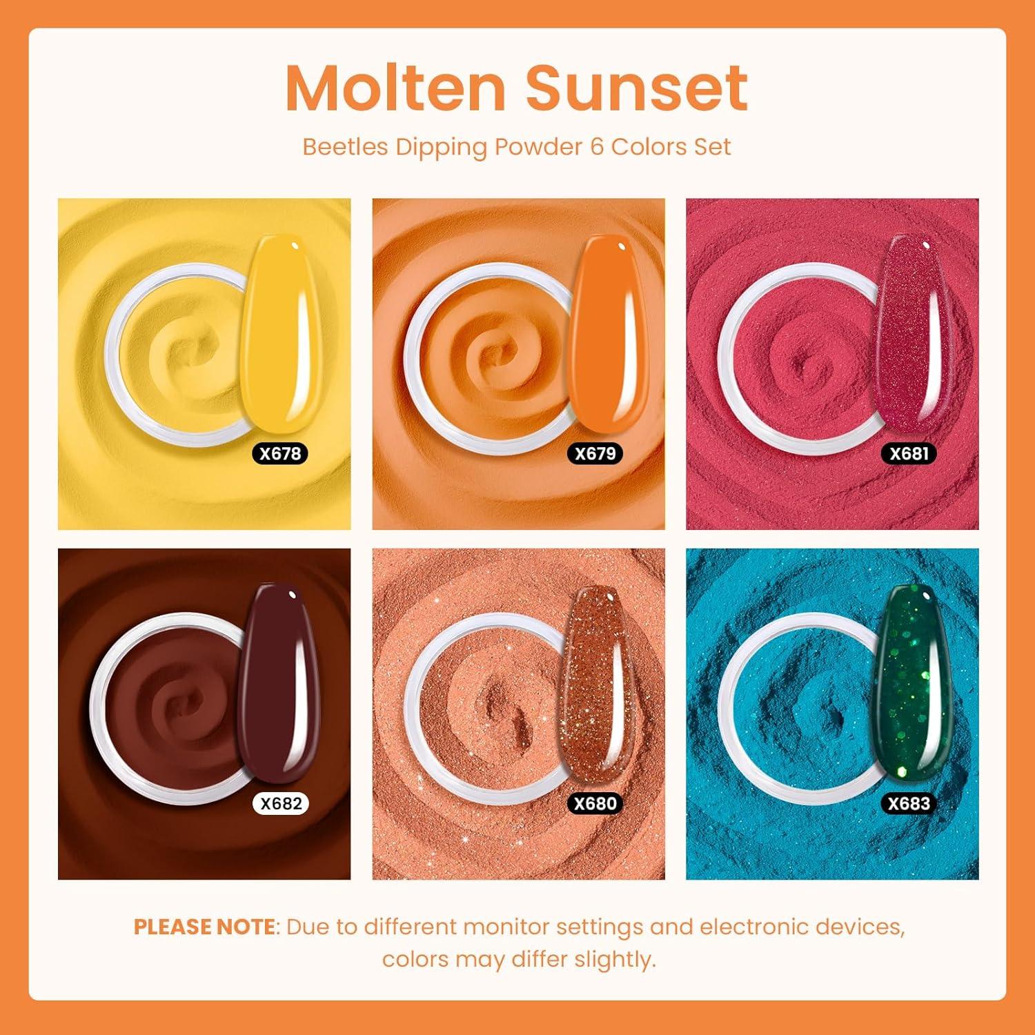 Beetles Christmas Dip Powder Nail Kit 6 Colors Red Glitter Dipping Powder No Need Nail Lamp Cured Manicure DIY Salon Gift for Girls Women(Molten Sunset)
