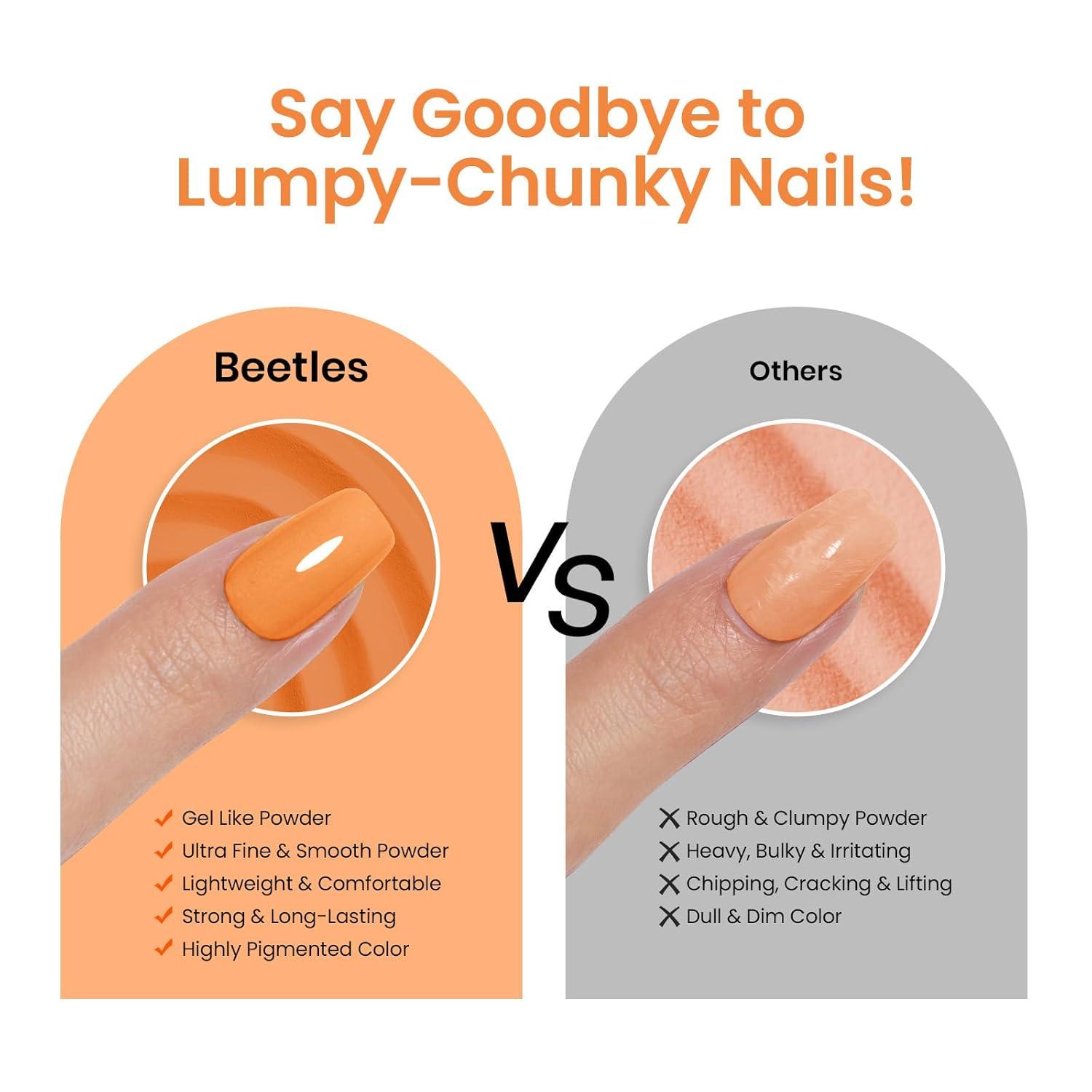 【Healthy & Harmless】Beetles dipping powder made with healthy, natural formula to help nails grow stronger and healthier. These don't damage the nail bed and available for air-dry.