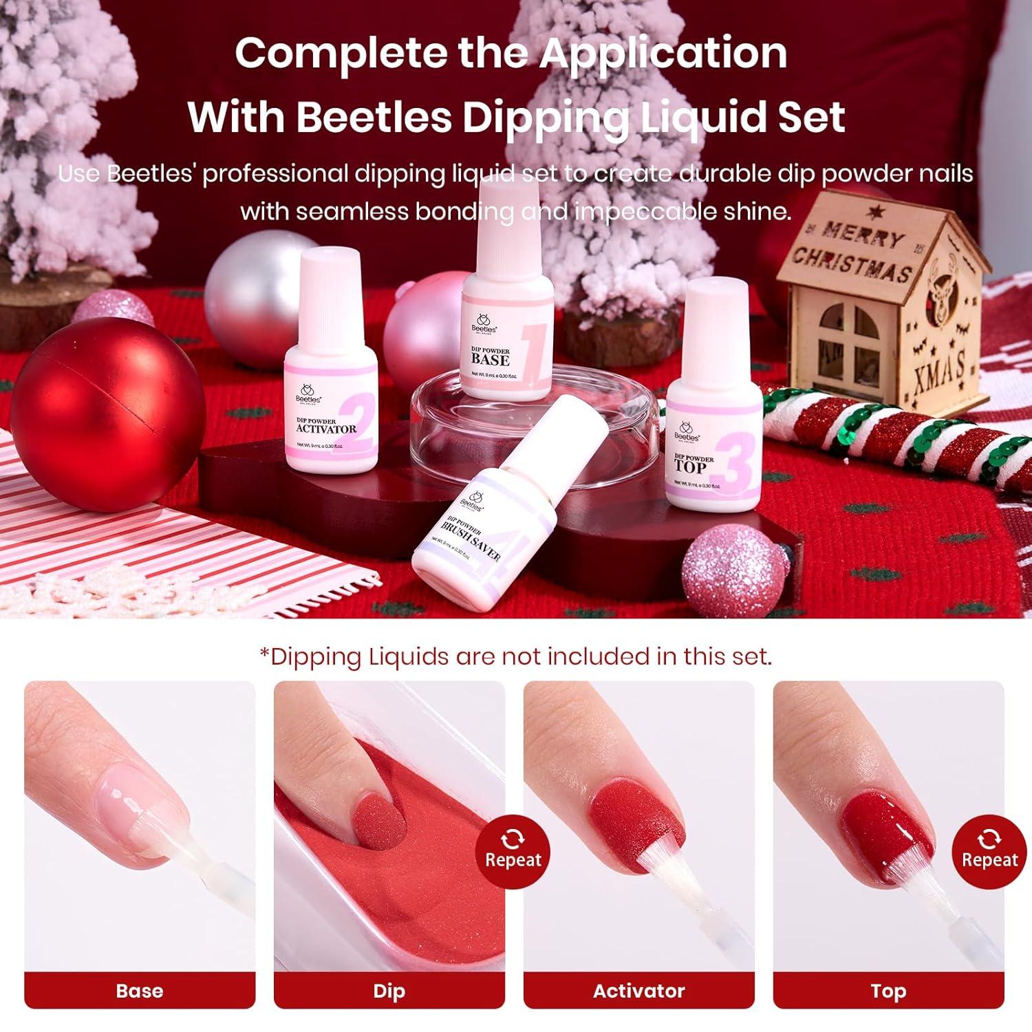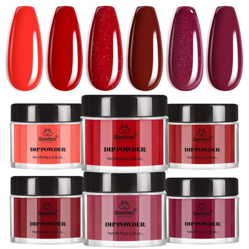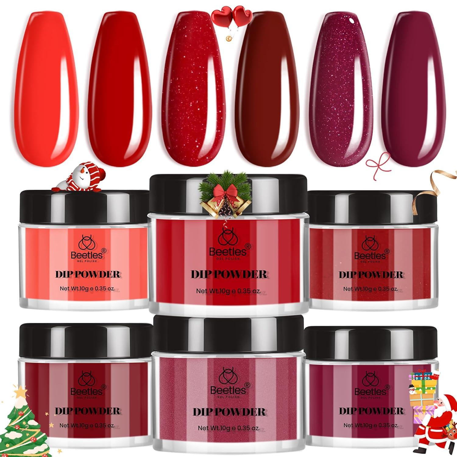 【Nail Dip Powder Kit】Beetles new 6 colors classic red dipped powder nail kit is perfect for winter and Christmas, and perfect for beginners.is. It is easy enough for beginners to apply. It's also a great Christmas gift for women.