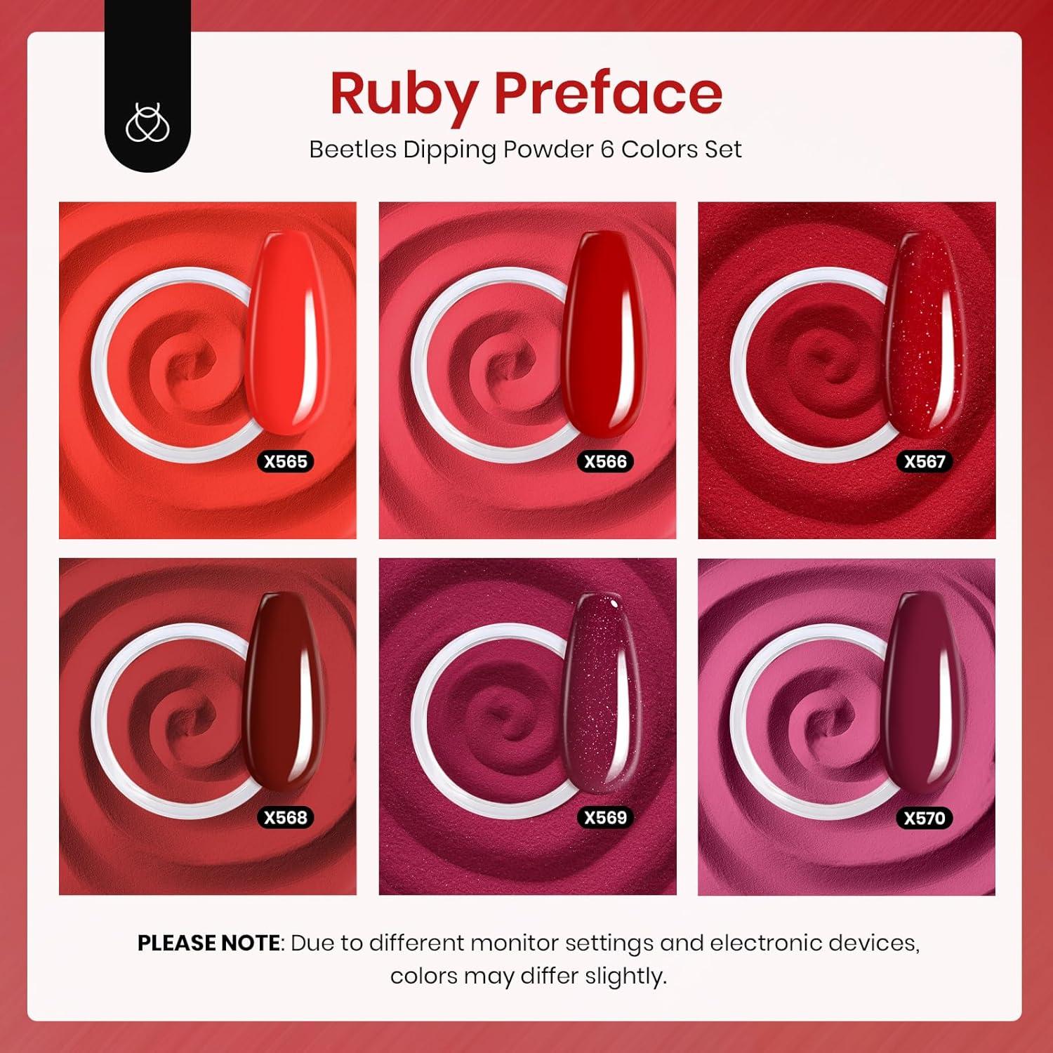 imageBeetles Christmas Dip Powder Nail Kit 6 Colors Red Glitter Dipping Powder No Need Nail Lamp Cured Manicure DIY Salon Gift for Girls WomenRuby Preface