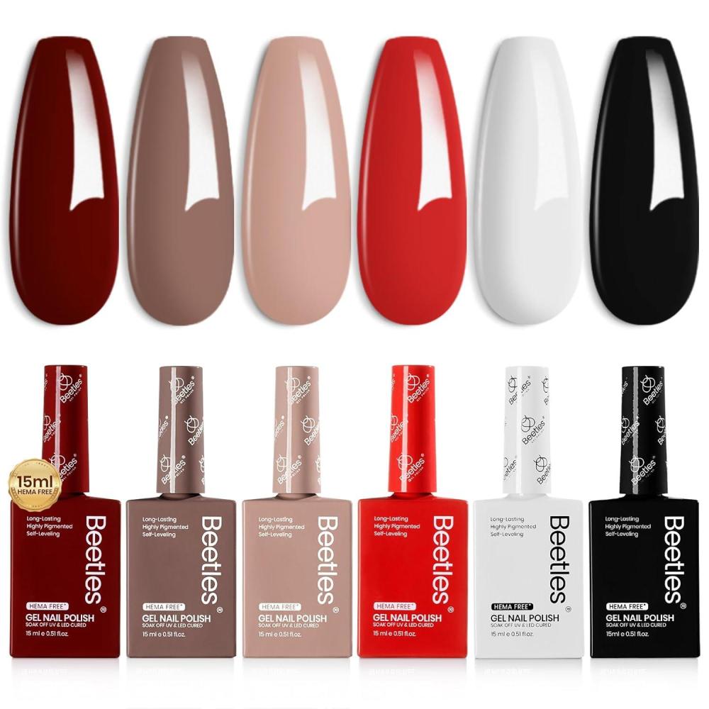 imageBeetles Christmas Gel Nail Polish  Candy Cane Gel Polish Set 6 Color Burgundy Red Glitter White Silver Winter Snow Holiday Sparkle Manicure Kit Soak off Uv Nail Art Design Gifts for WomenHema Free Soft Classics