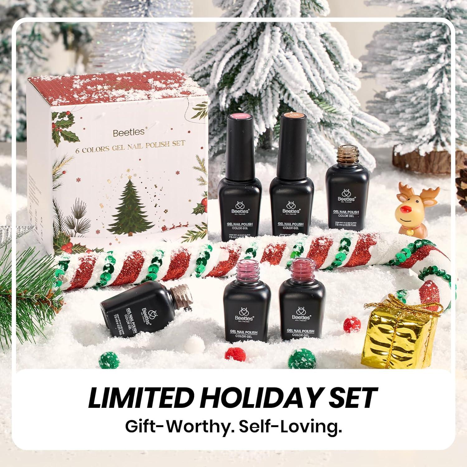 Beetles Christmas Gel Nail Polish Set, Fall Burgundy Purple Red Green Glitter Gel Polish Soak Off Nail Art Beauty Gift Set for Women(0-0-0-Rose Veil)
