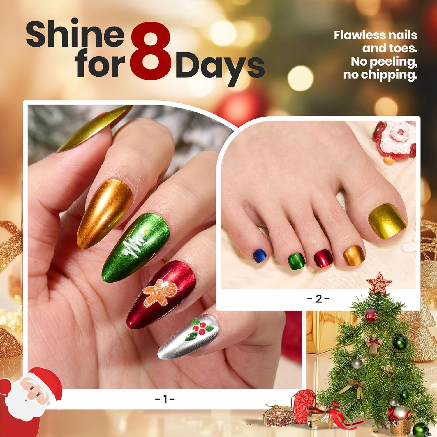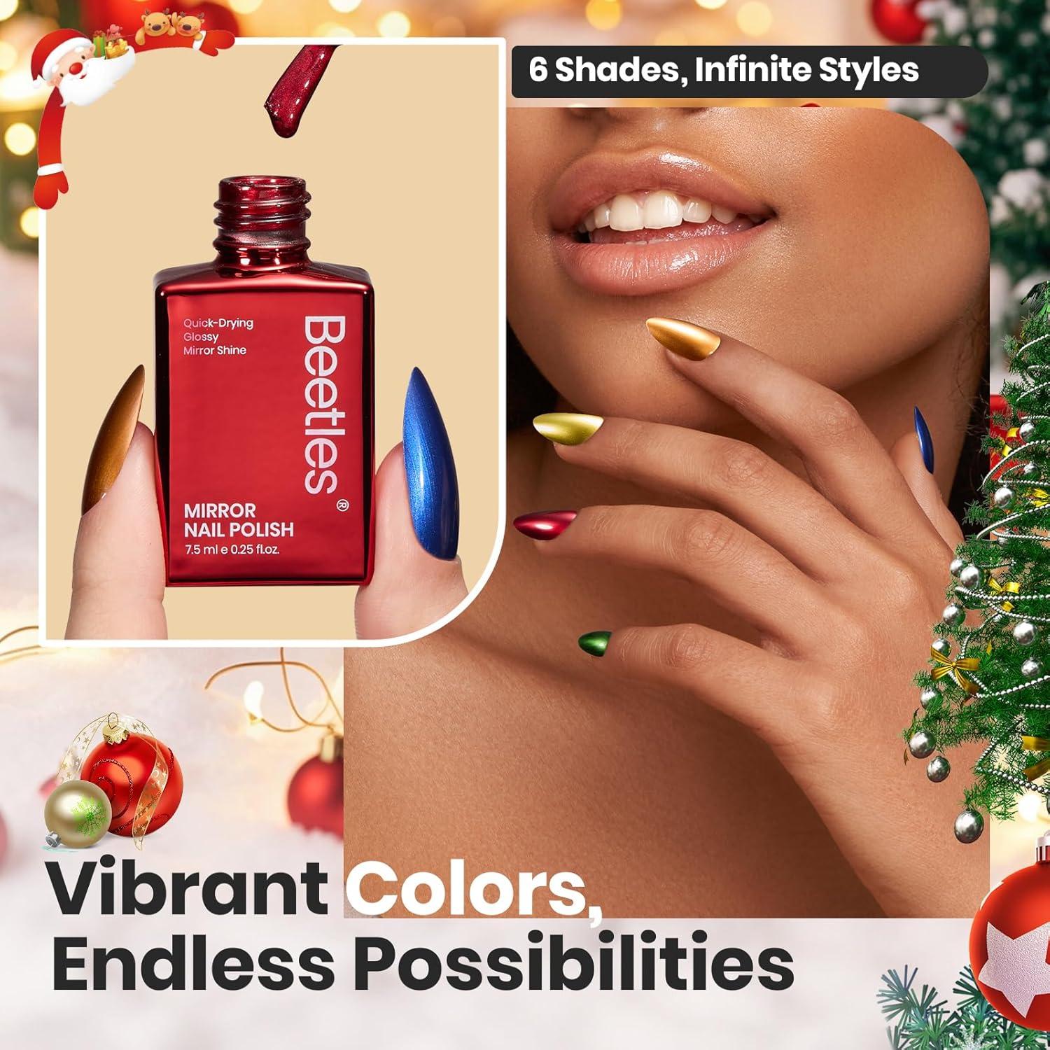 Beetles Chrome Nail Polish Set - Chameleon Holographic Ember 6 Colors Quick Fast Dry Metallic Nail Polish Long Lasting DIY Fingernail Art Home Salon Christmas Gifts for Girls Women(Jingle Jewels)