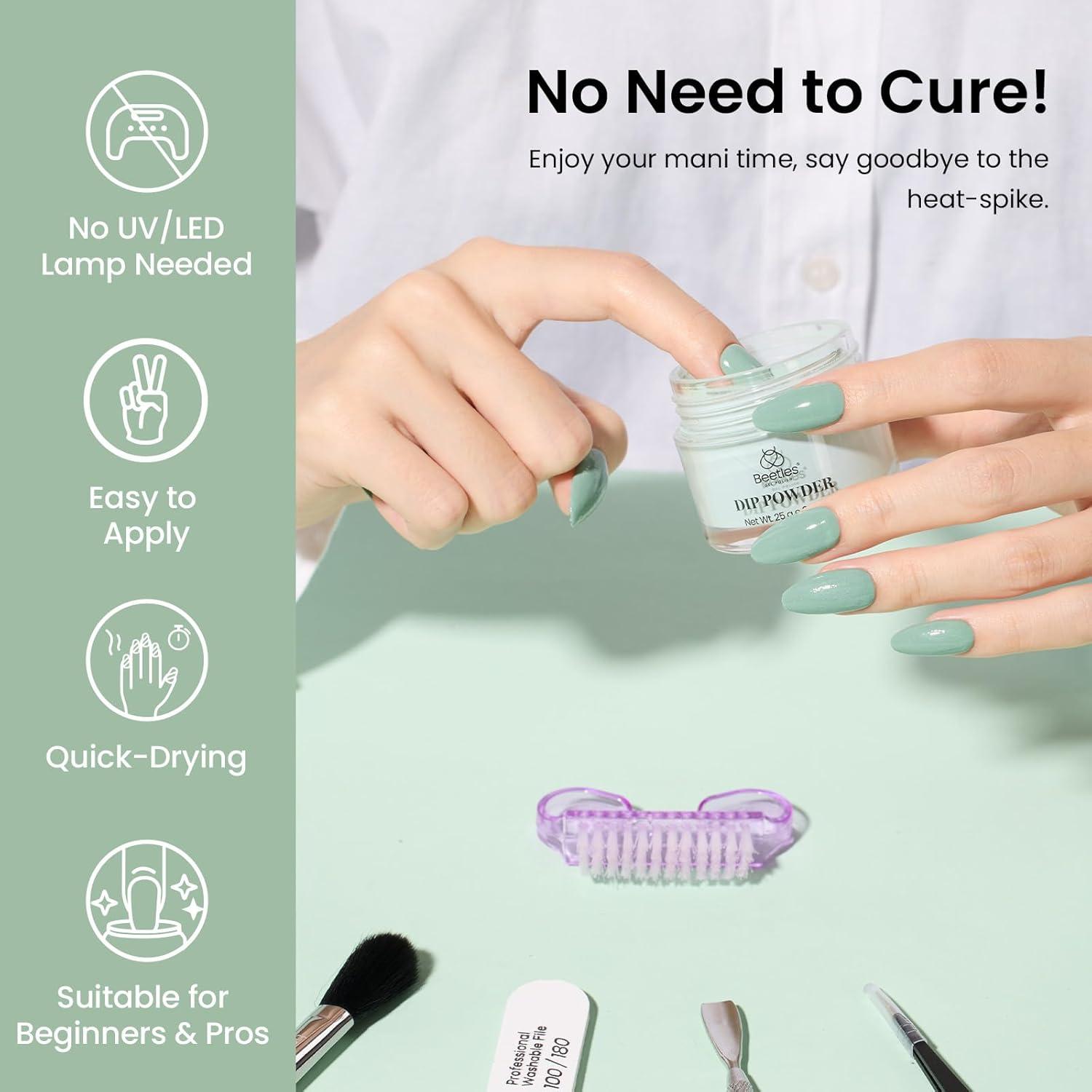 imageBeetles Dip Powder Clear Color Transparent Nail Dipping Powder Crystal Clear French Nail Art Basic Starter No Nail Lamp Needed Manicure Salon DIY at Home for WomenGreen