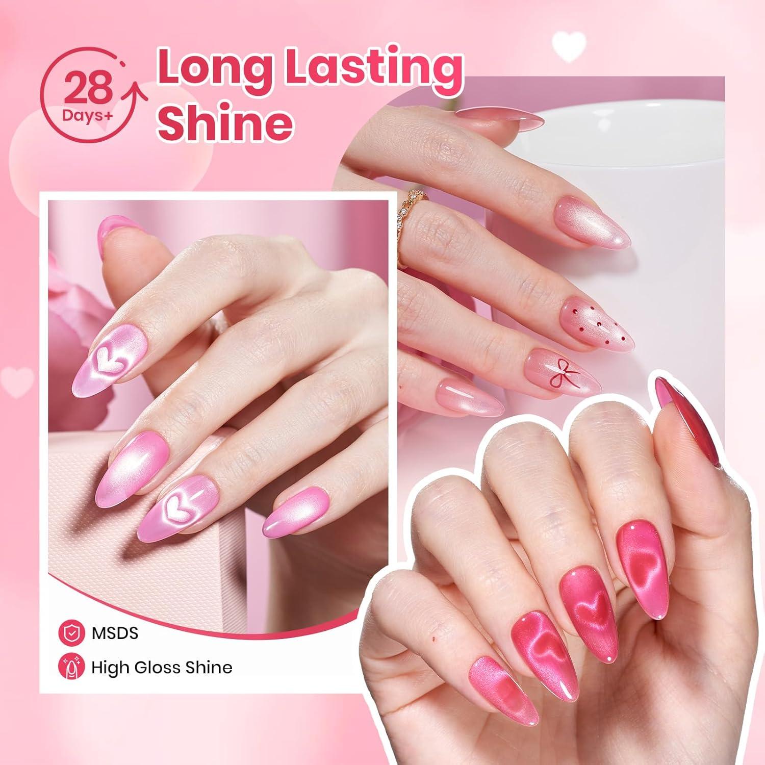 【Beetles Valentines Gel Polish Set】The Blush Cotton pink gel polish set includes 6 colors, soft light pink, hot pink, baby pink, and glitter pink. The carefully selected 6 valentines nails colors helps you light up your Valentine's Day clothing and mood. Pink gel nail polish set is the perfect Valentine's Day nail polish suit, which can express your love and romance.